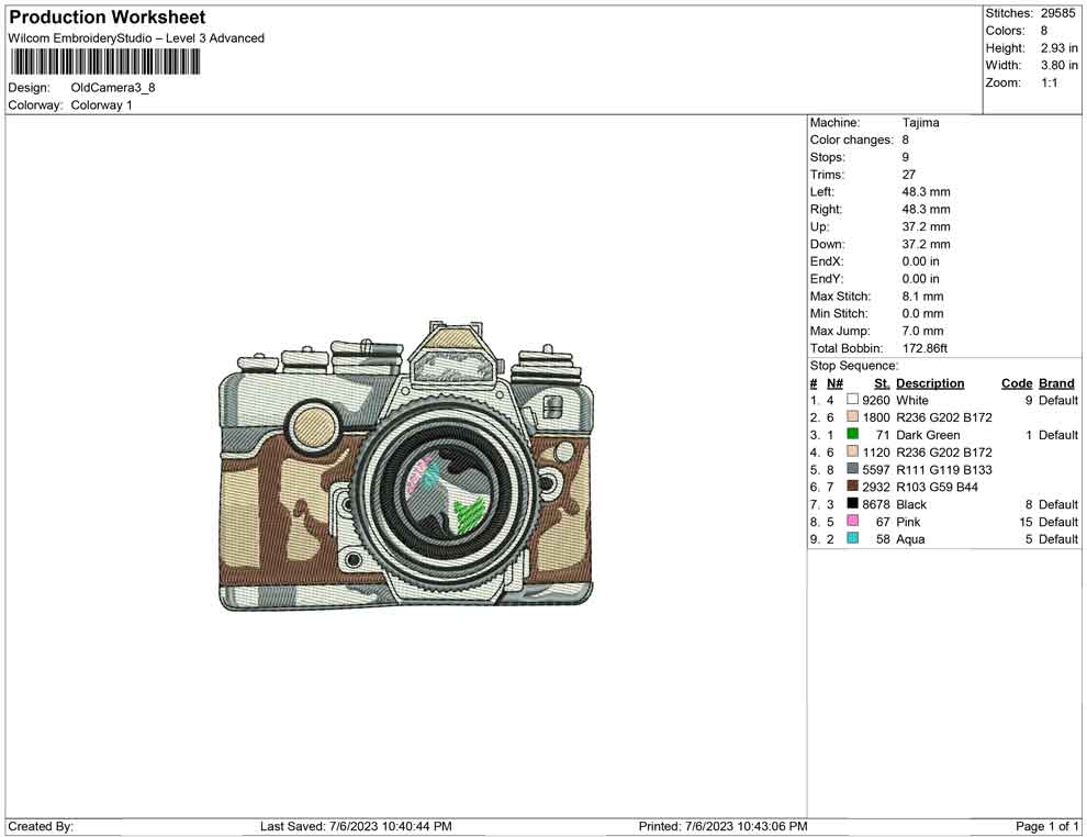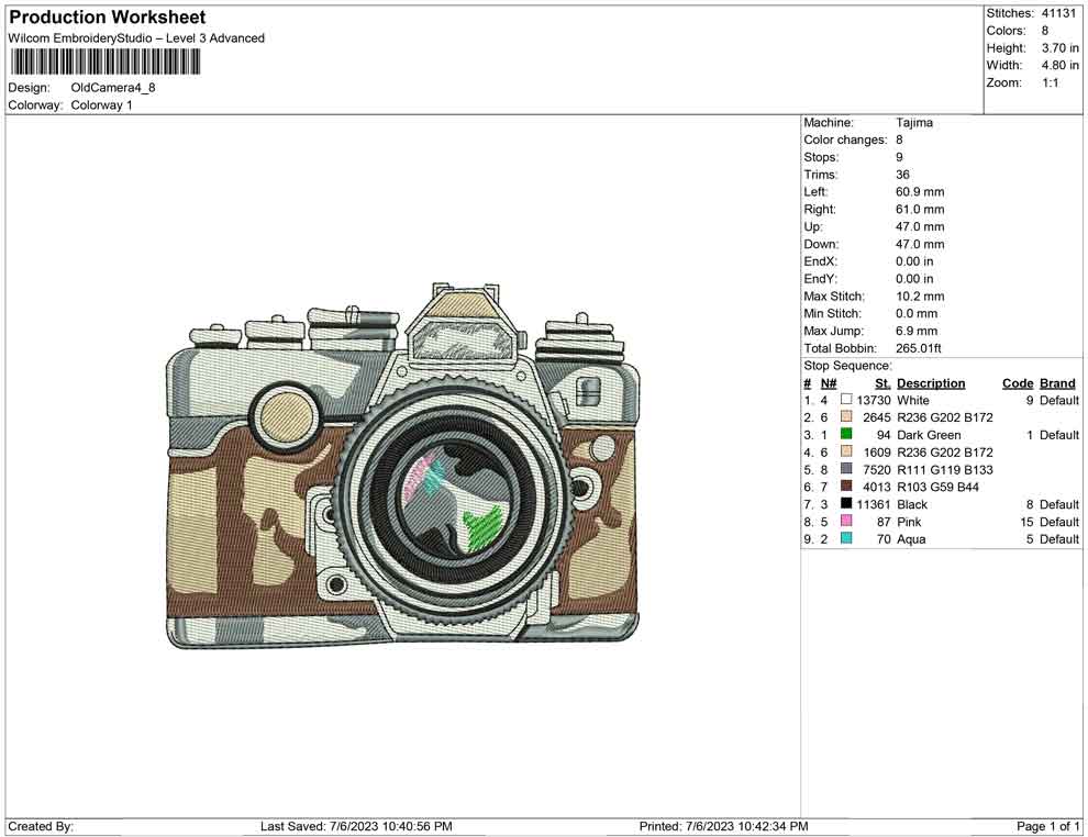 Old Camera embroidery design