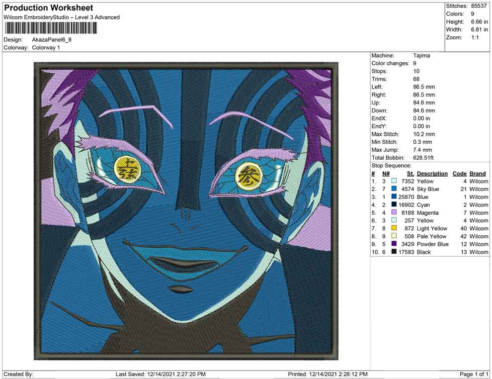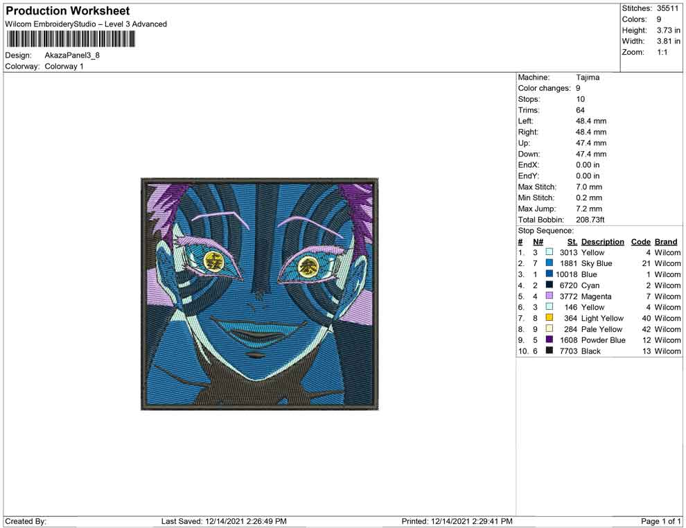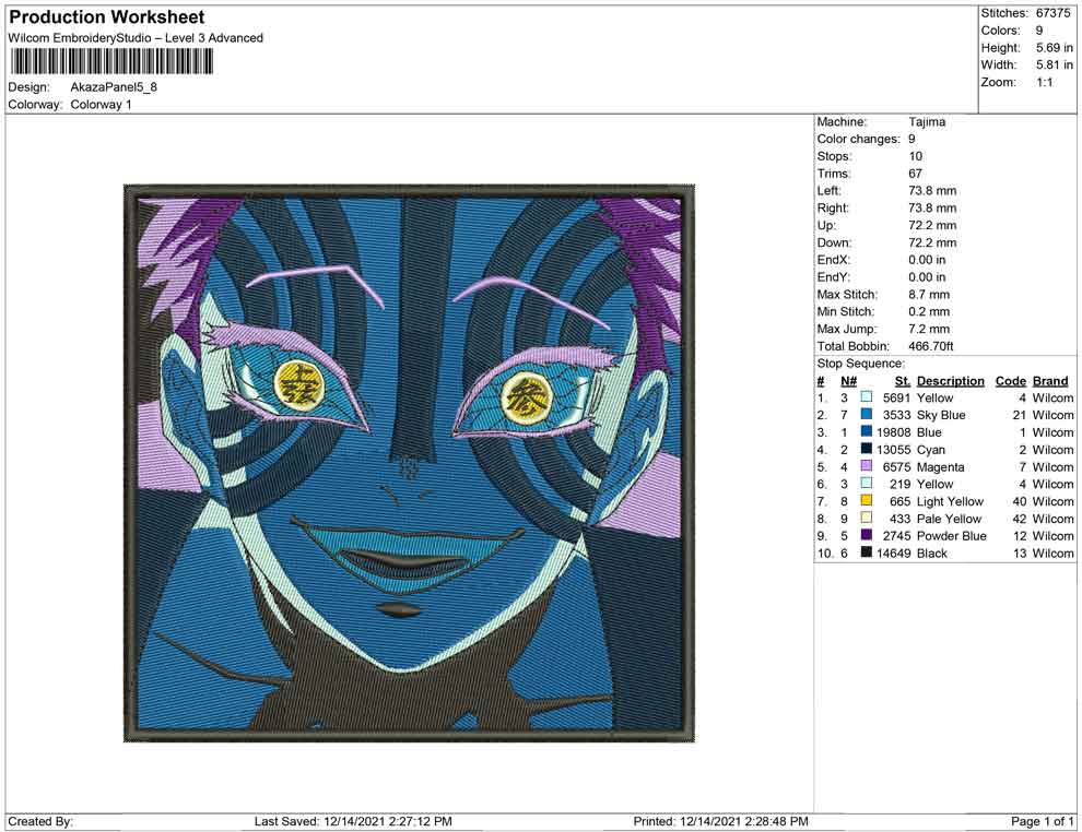 Akaza Panel embroidery design