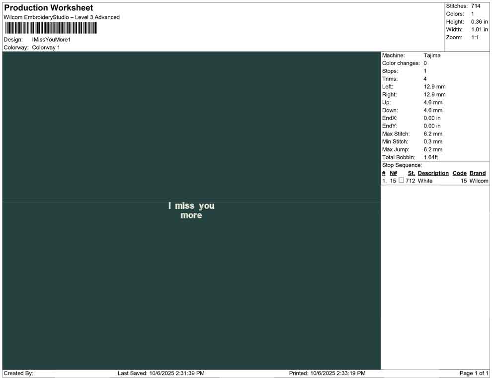 I Miss You More embroidery design