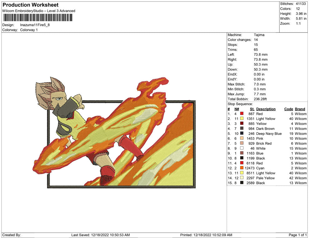 Inazuma 11 Fire Panelembroidery design