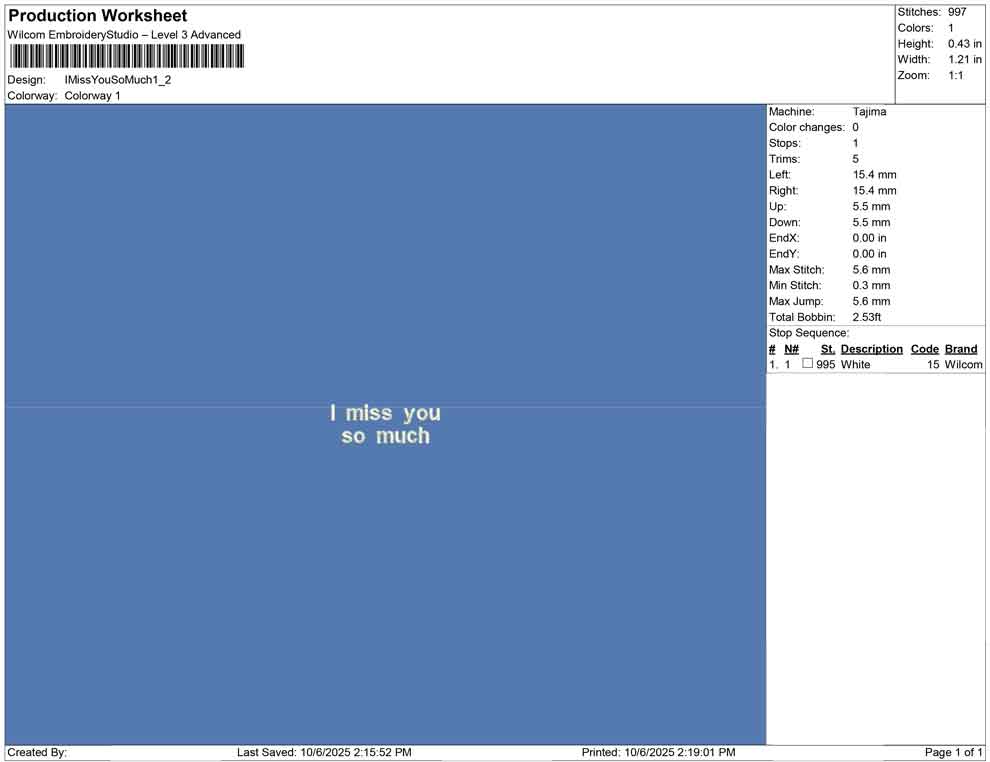 I Miss You So Much embroidery design