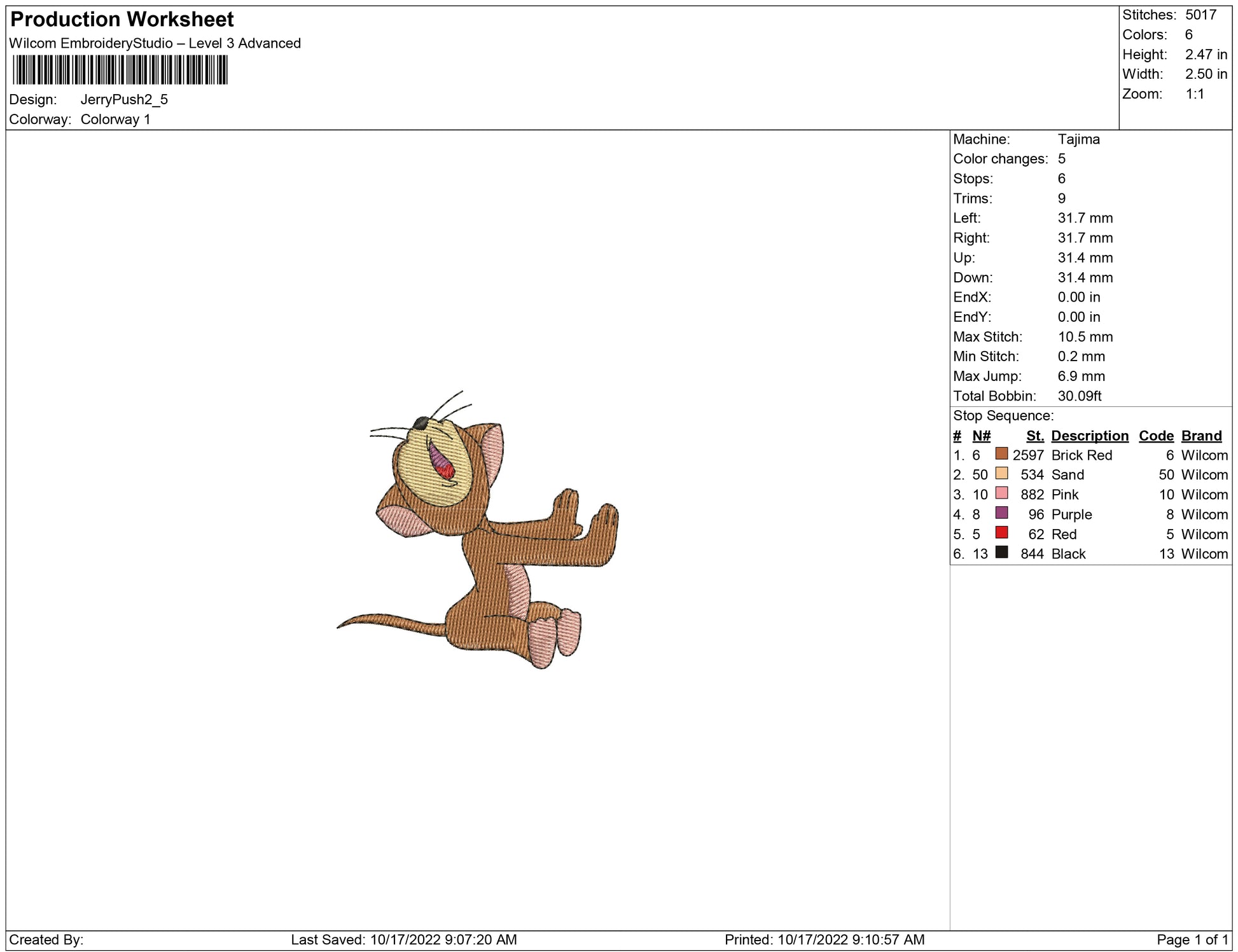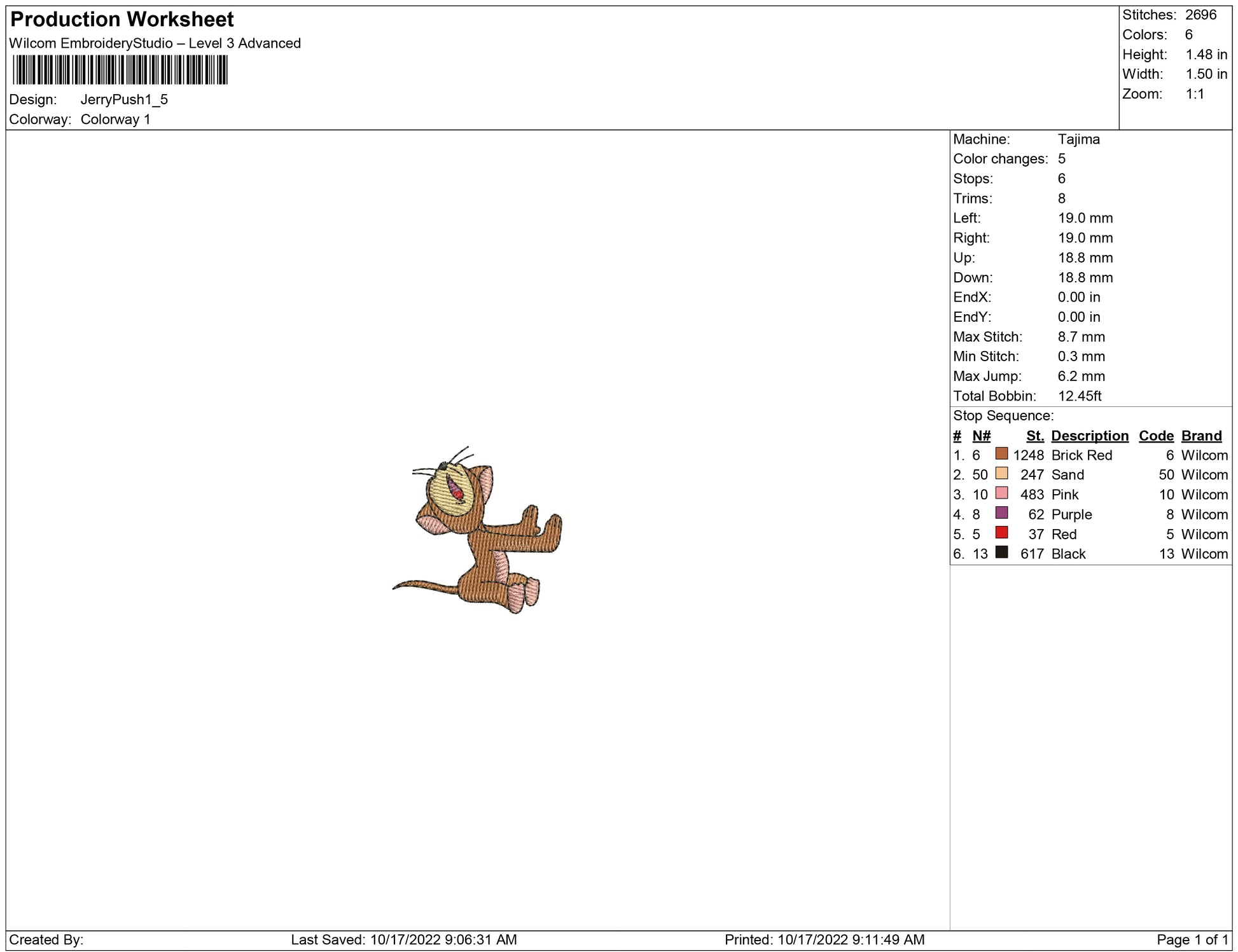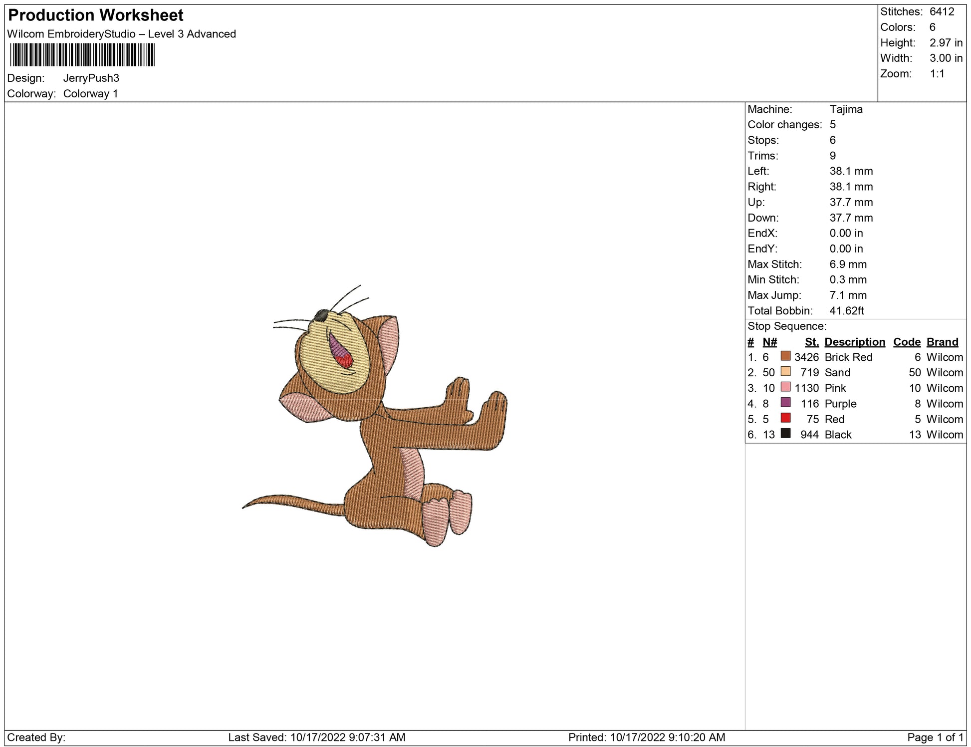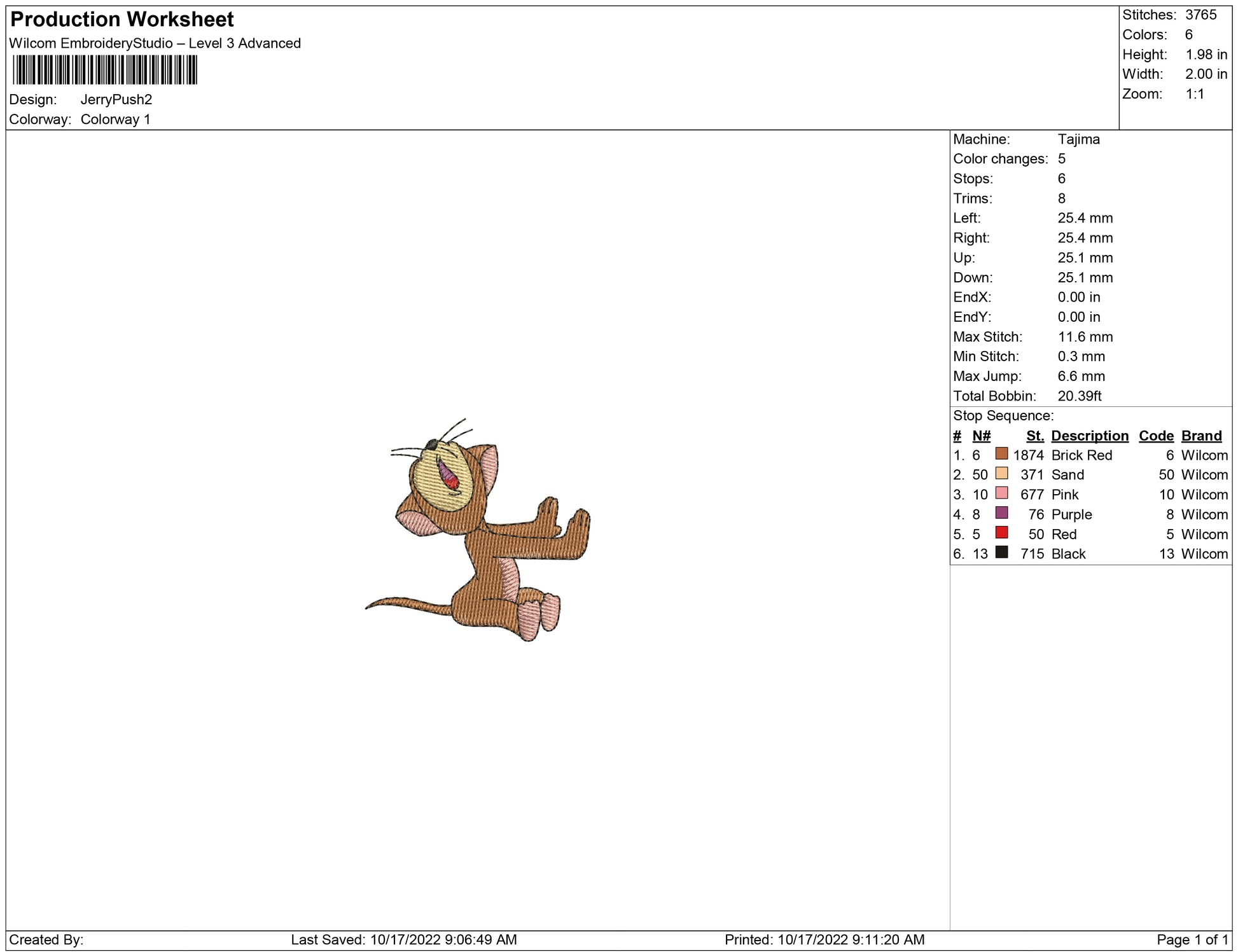Jerry Push embroidery design