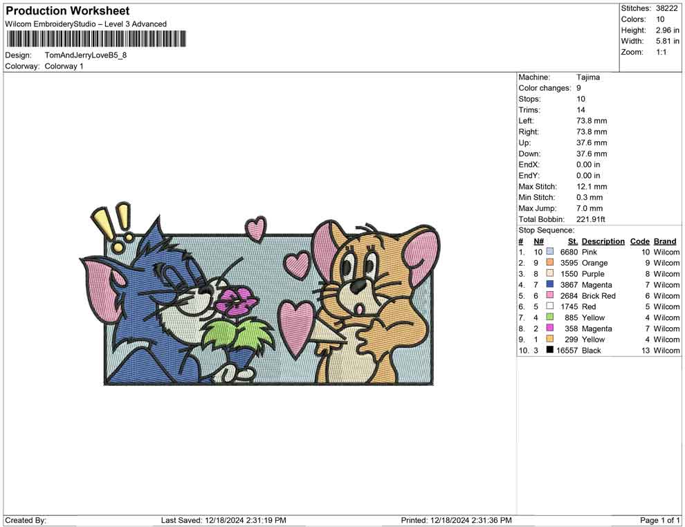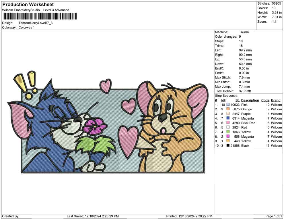 Tom And Jerry Love B embroidery designs