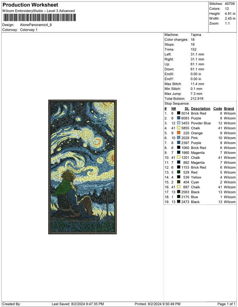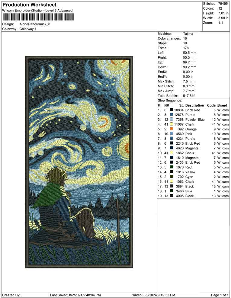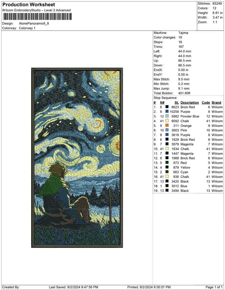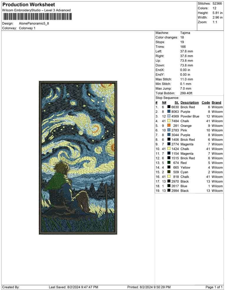 Alone Panoramic embroidery design