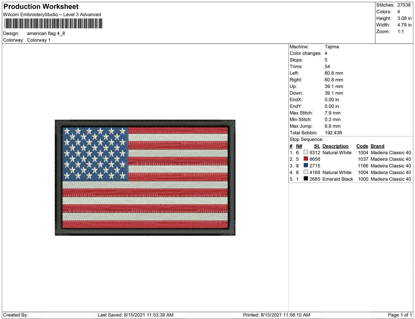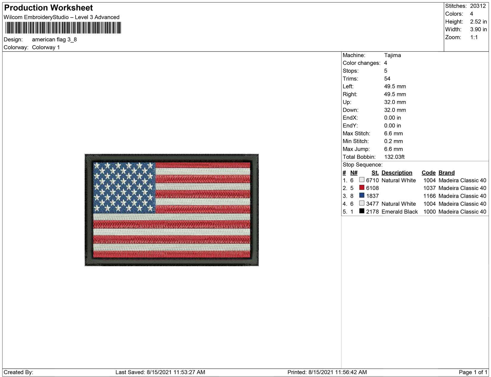 American Flag embroidery