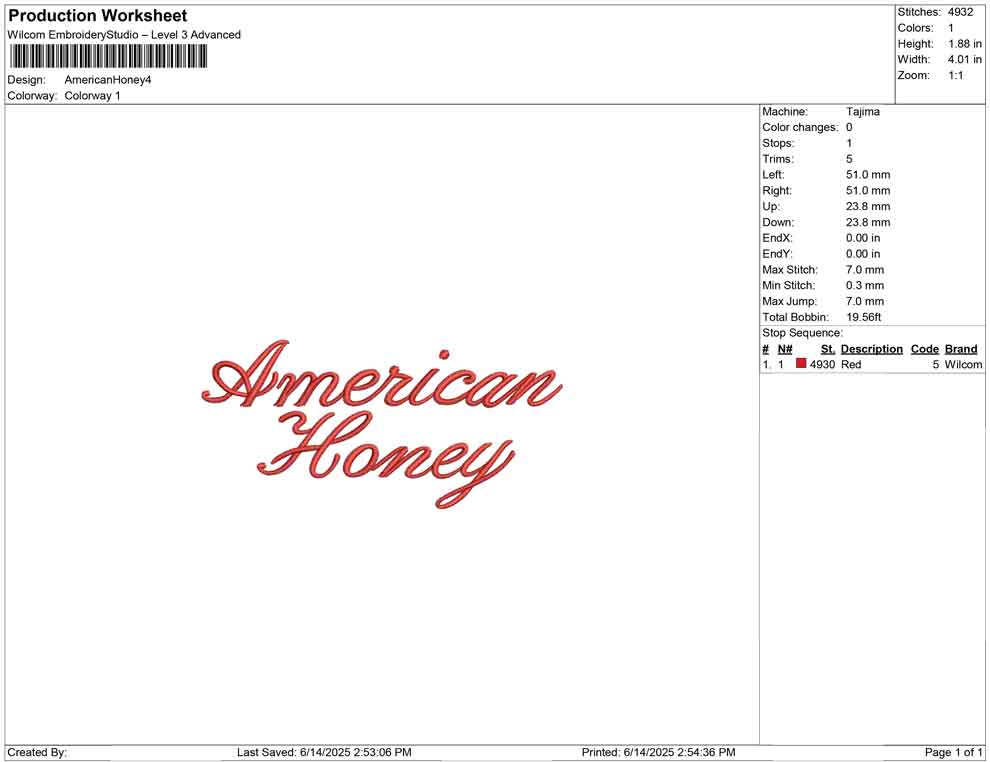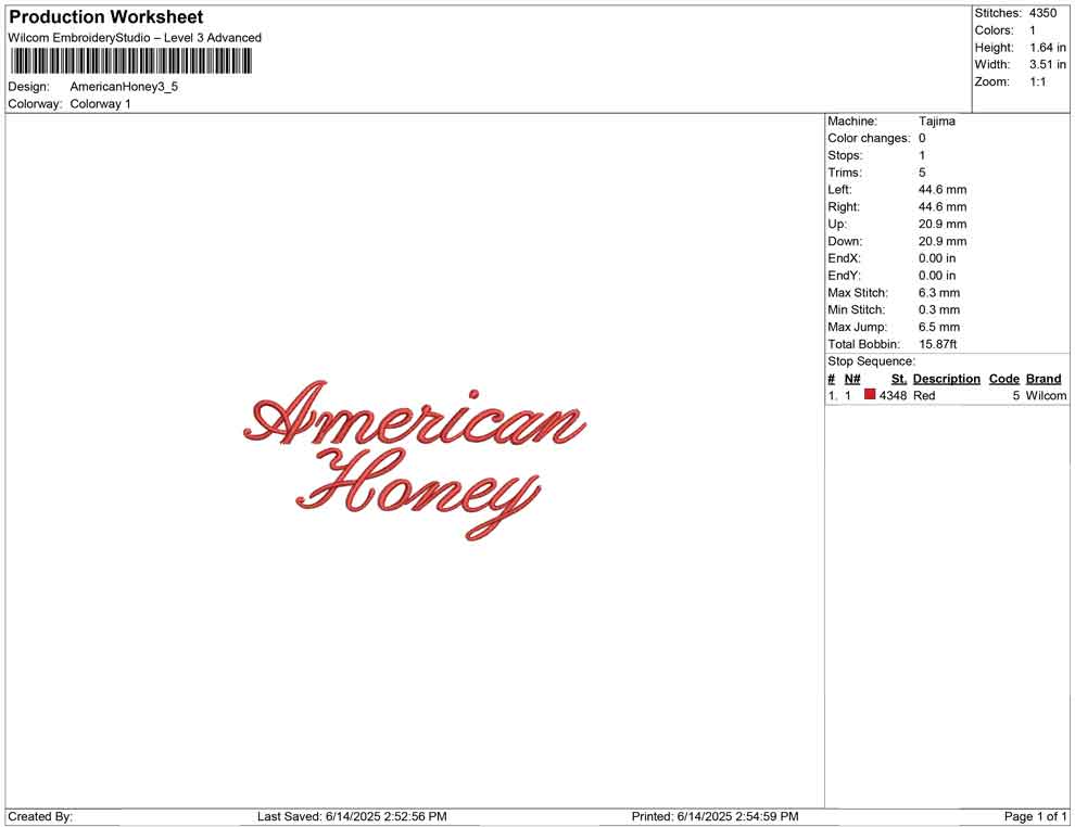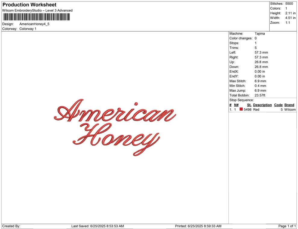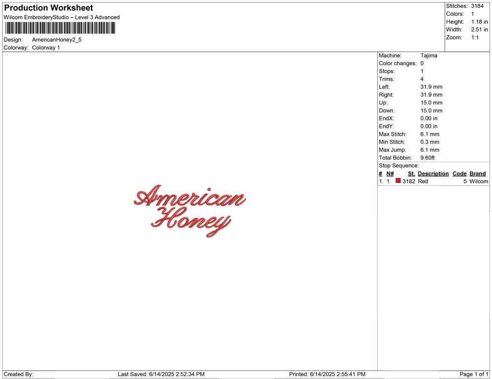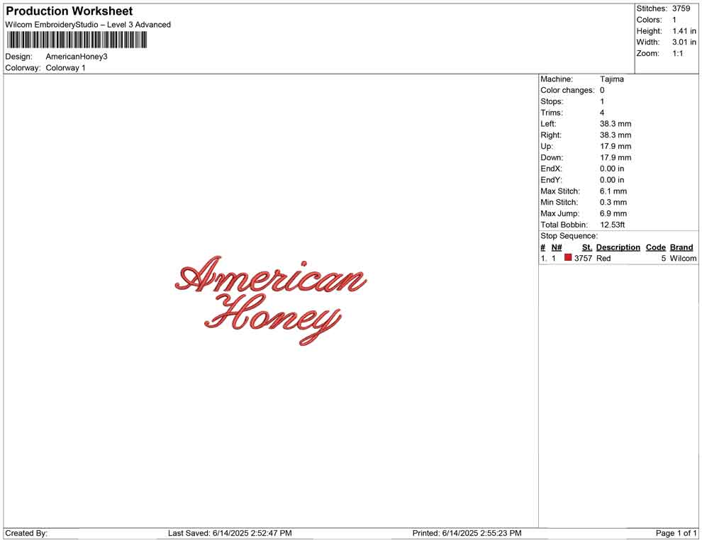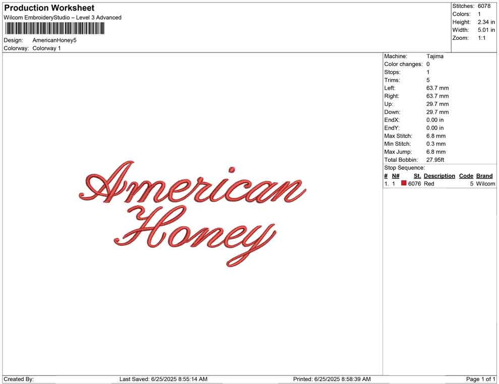 American Honey 3D puff embroidery