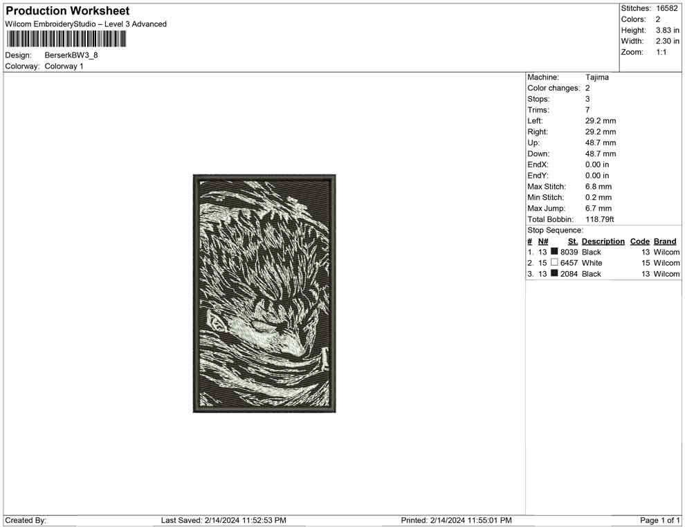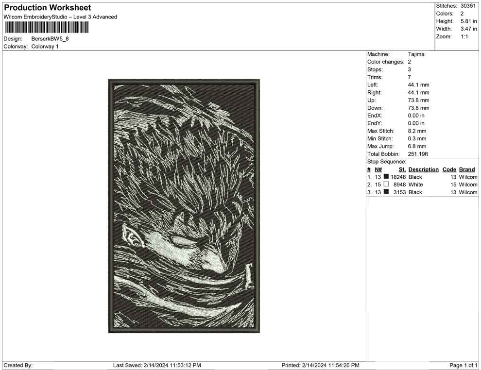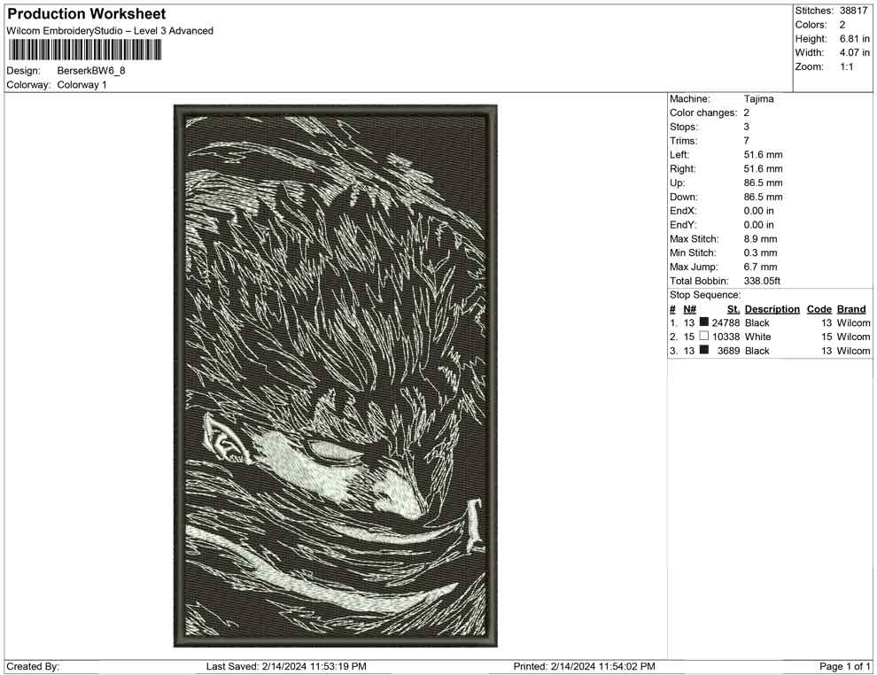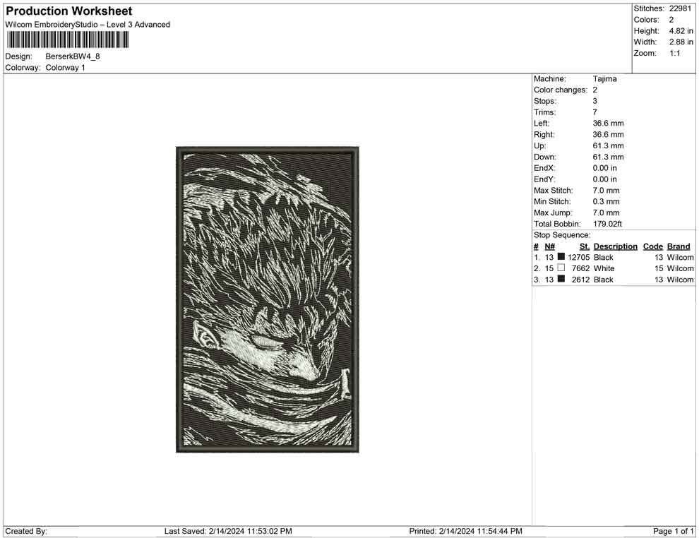 Berserk BW embroidery design