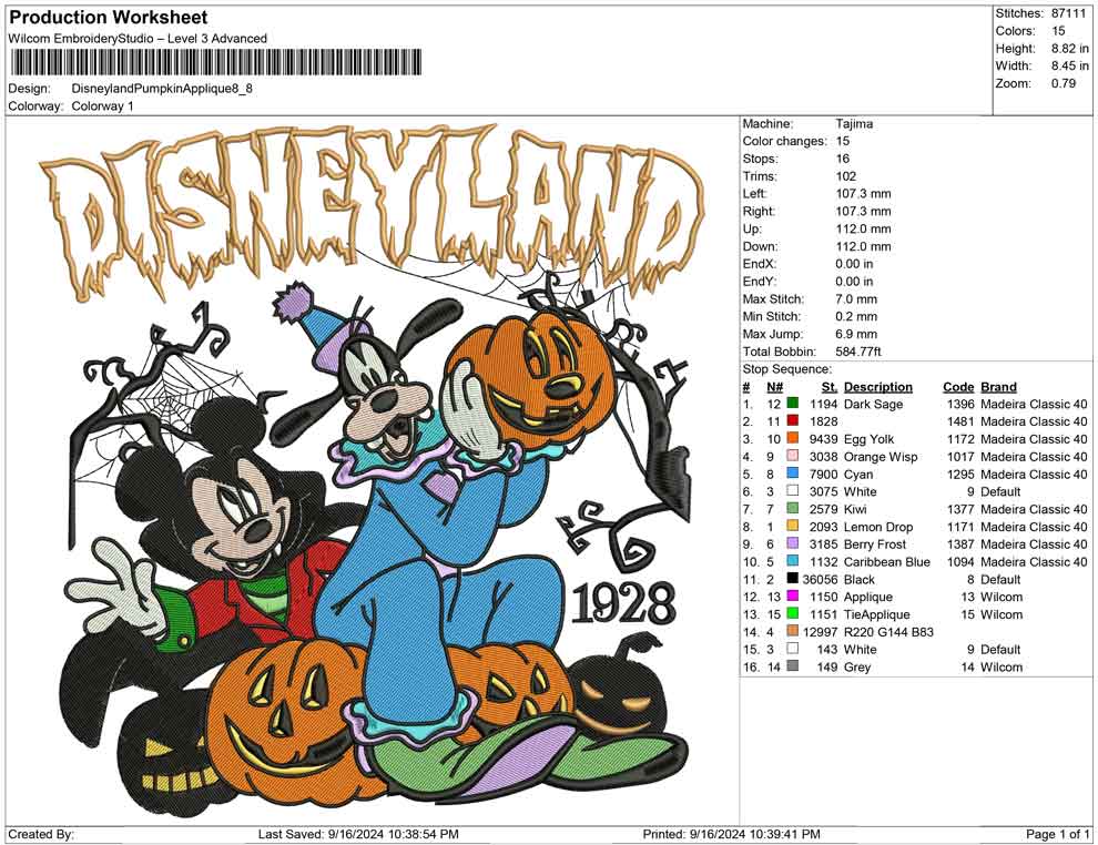 Disneyland Pumpkins Applique