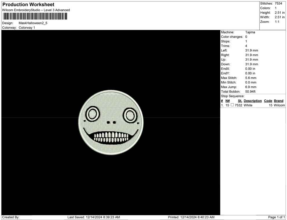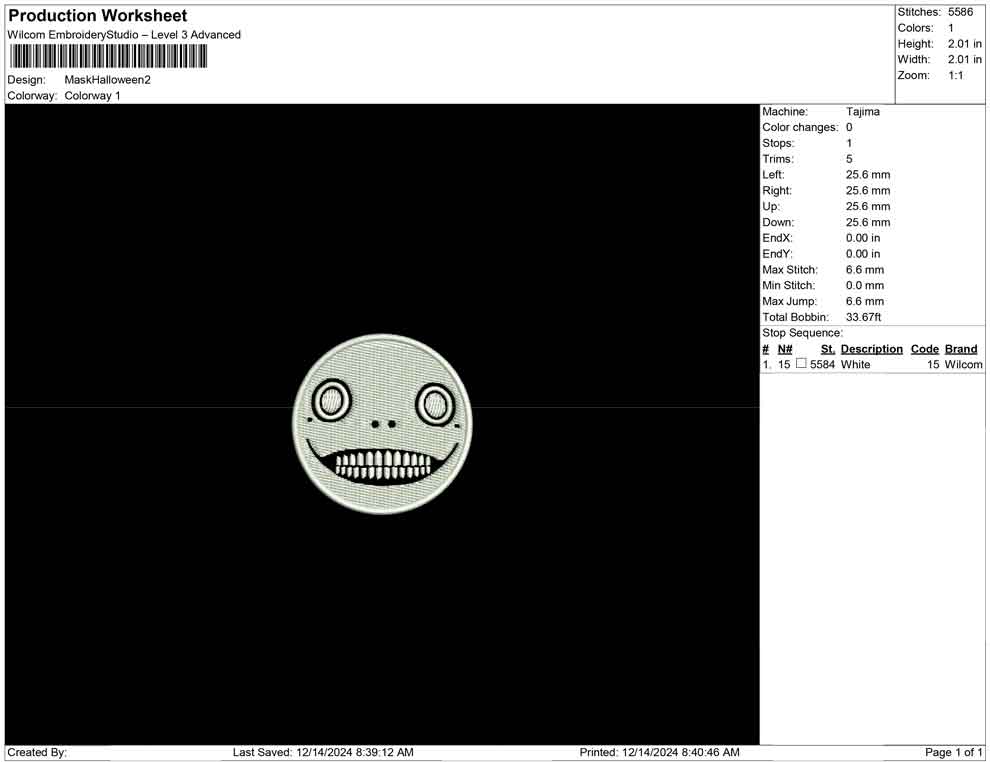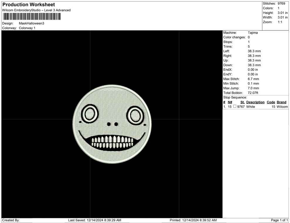 Mask Halloween embroidery design