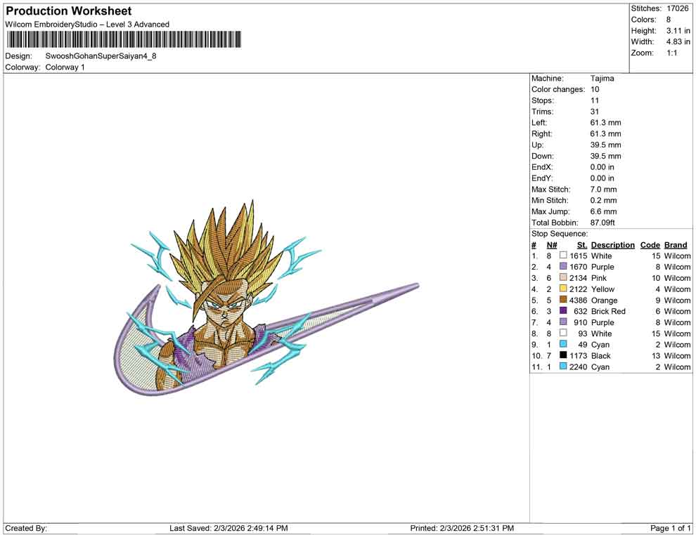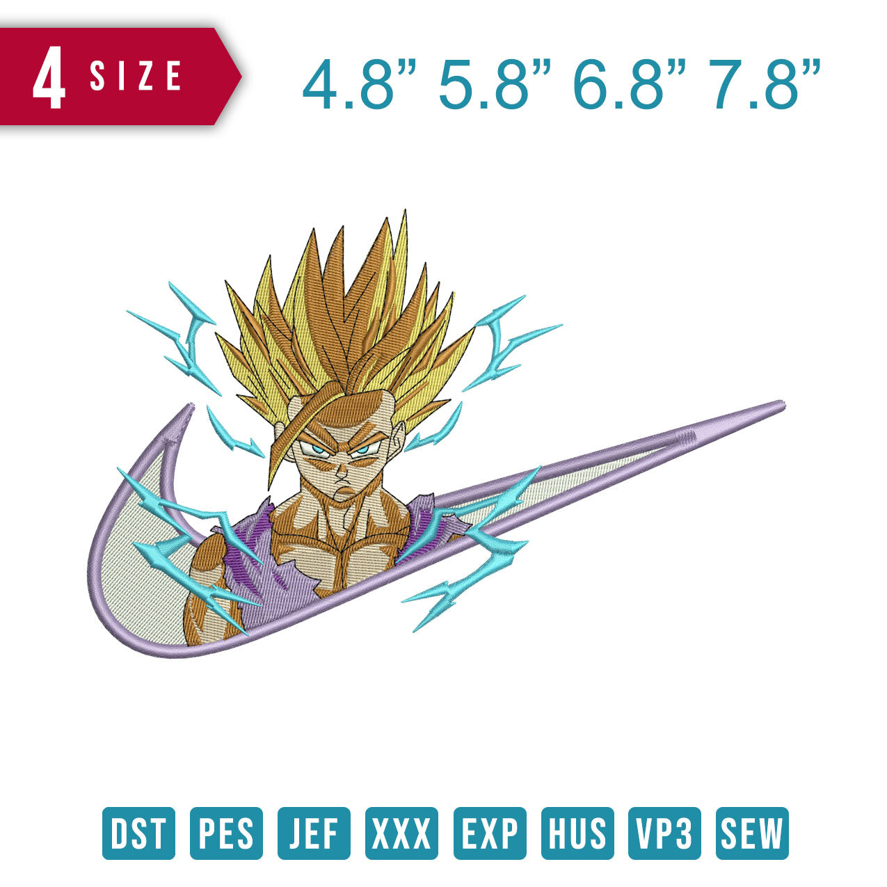 Swoosh Gohan Super Saiyan embroidery design