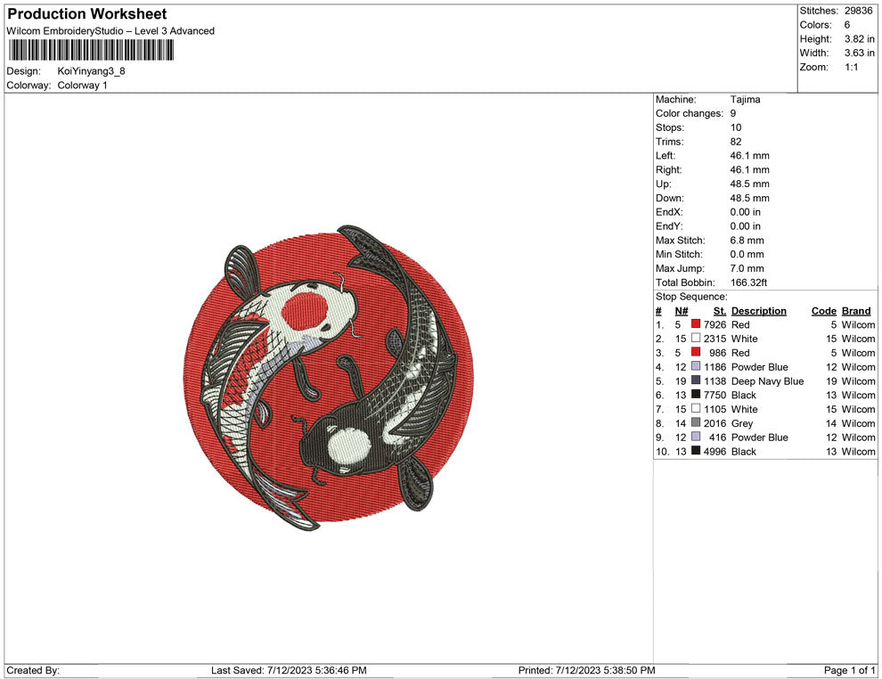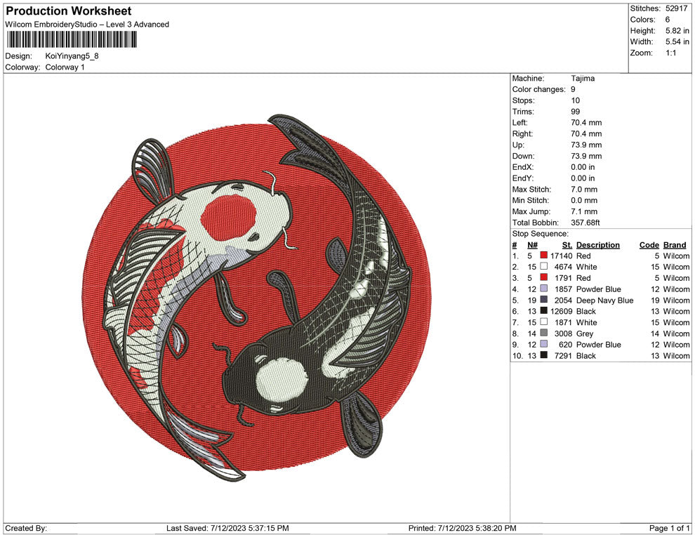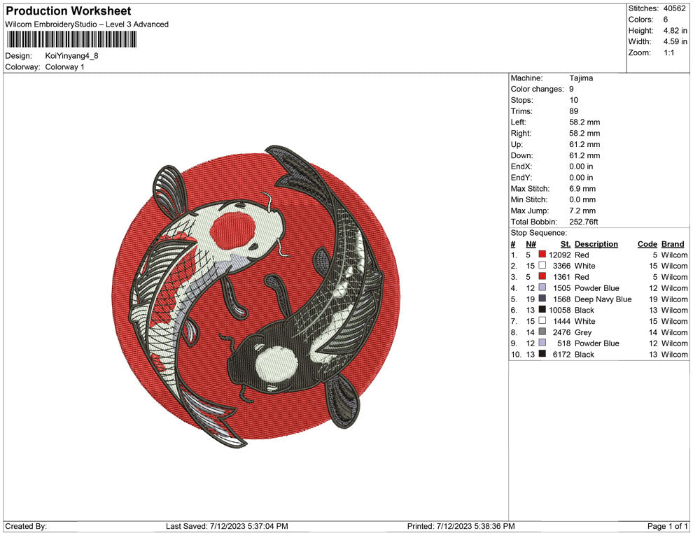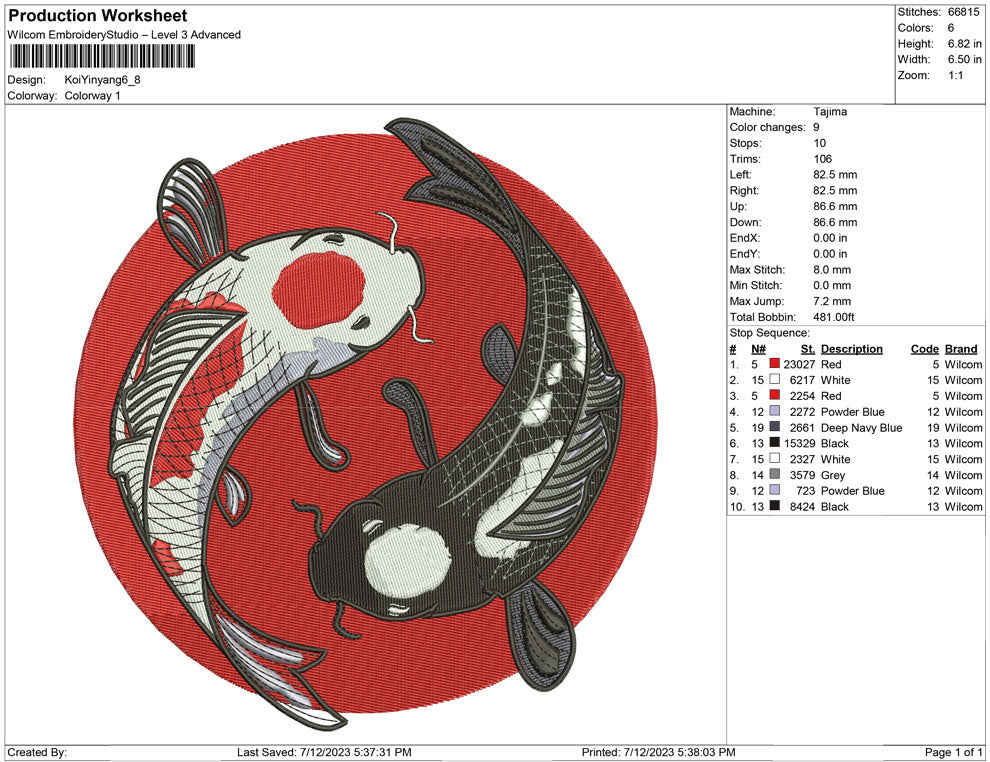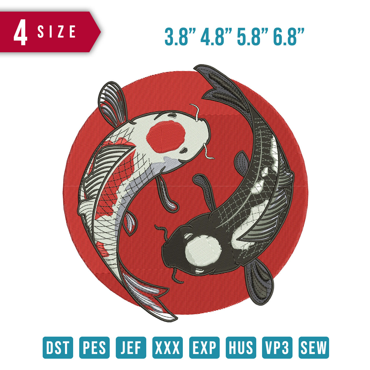 2 Koi-Fisch-Stickerei-Design