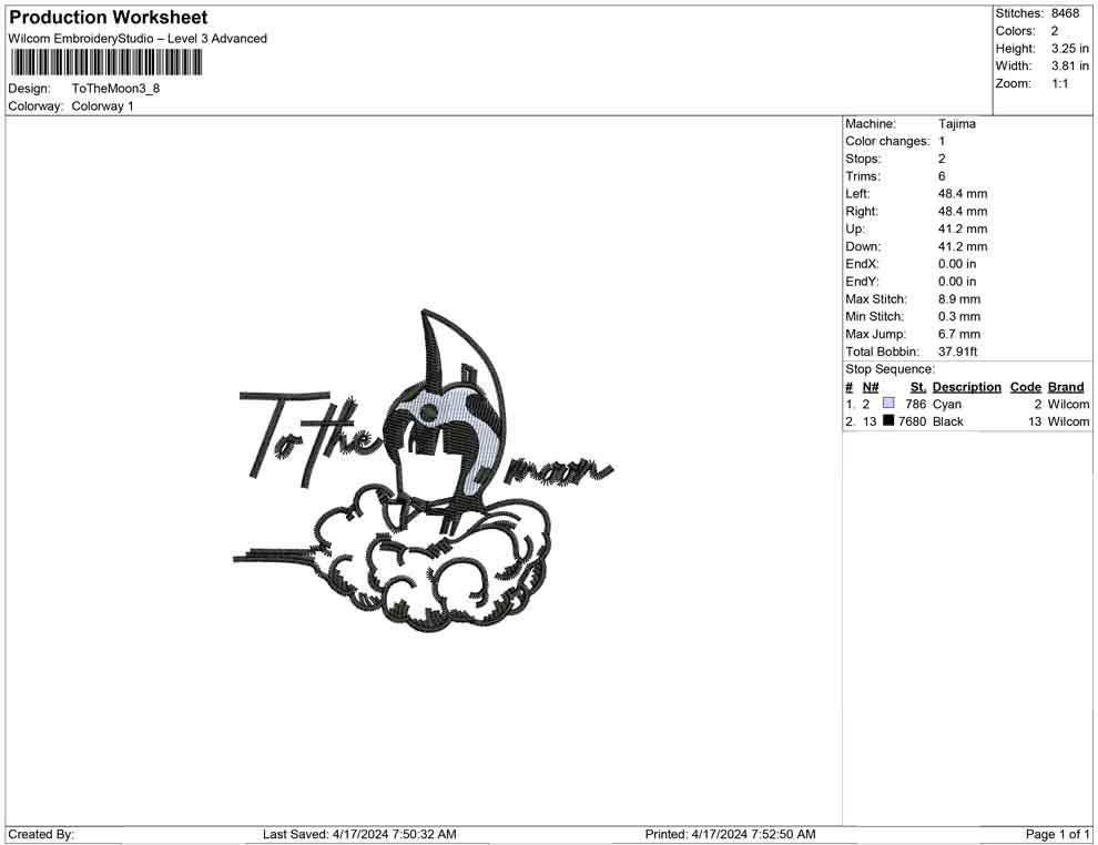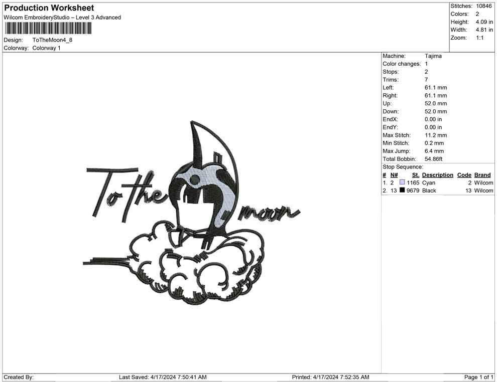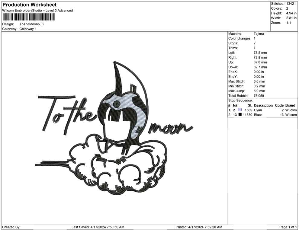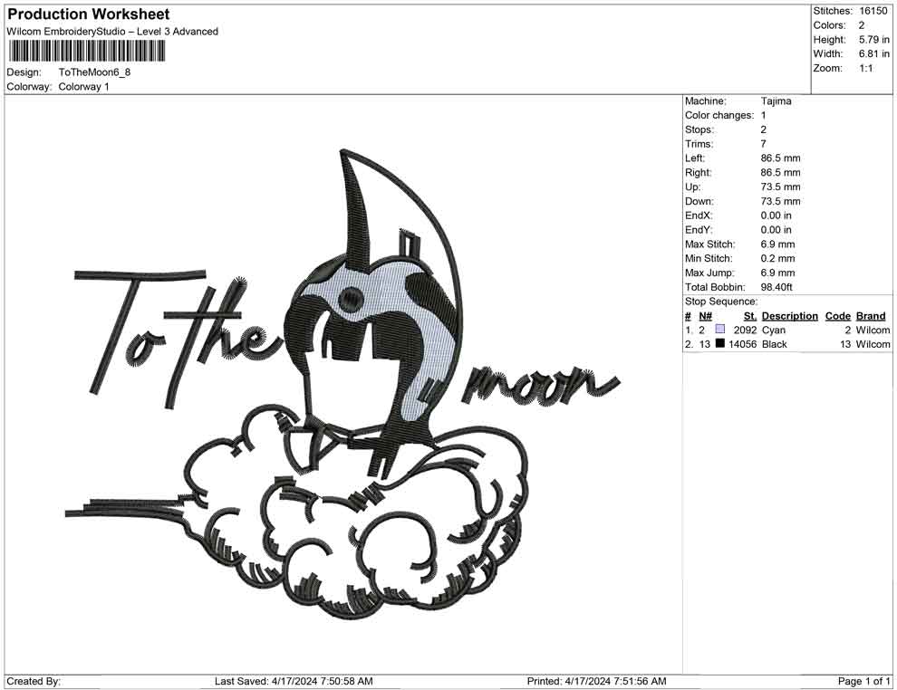 To The Moon embroidery design
