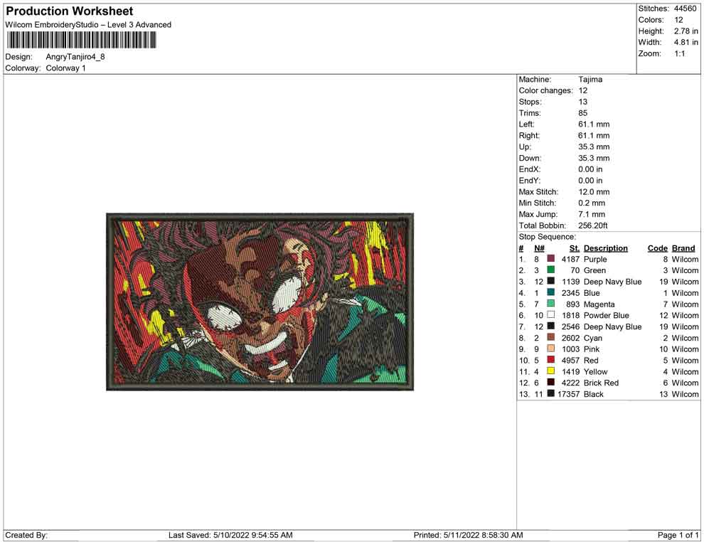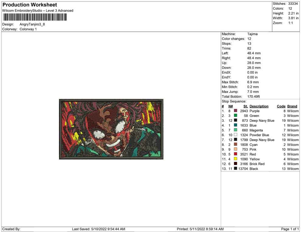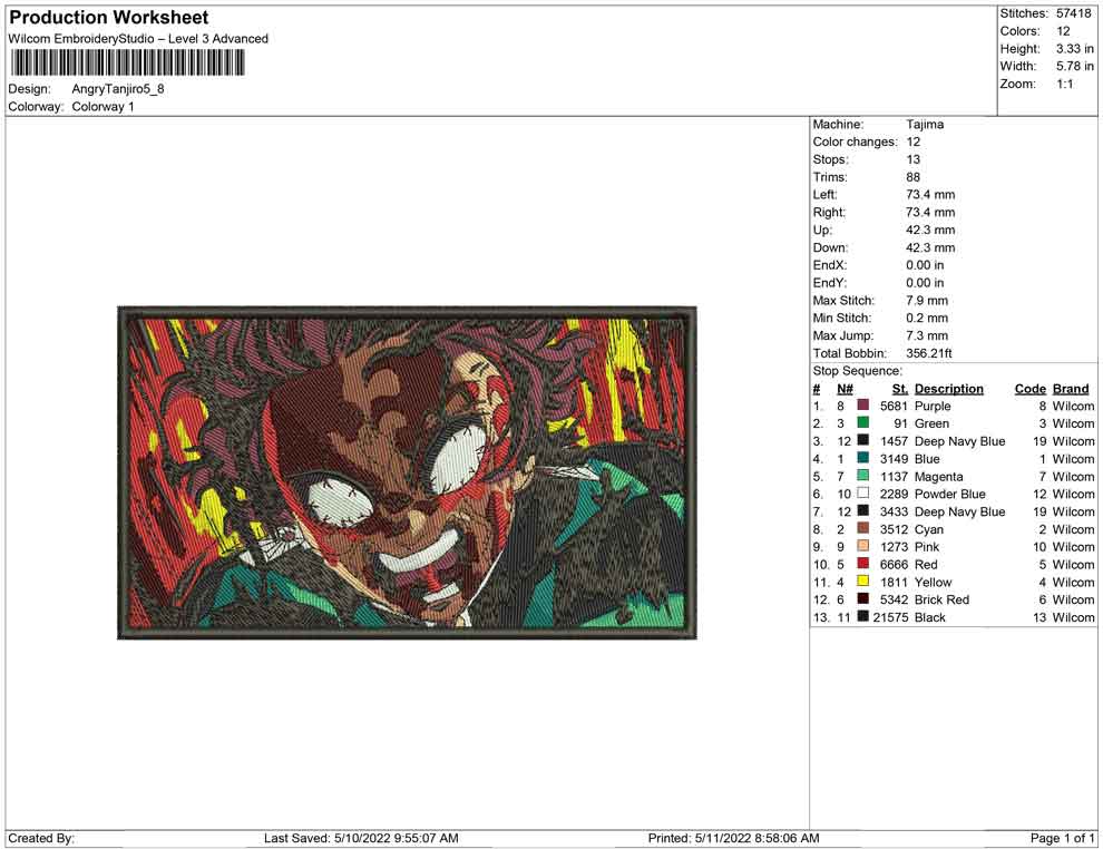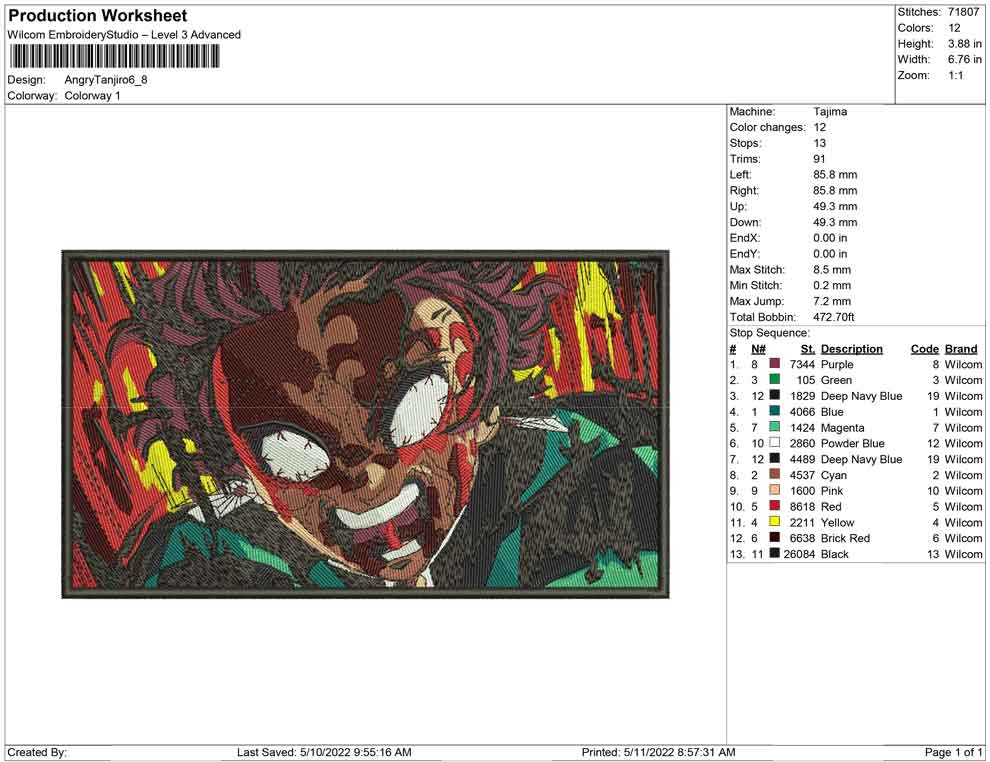 Angry Tanjiro embroidery design