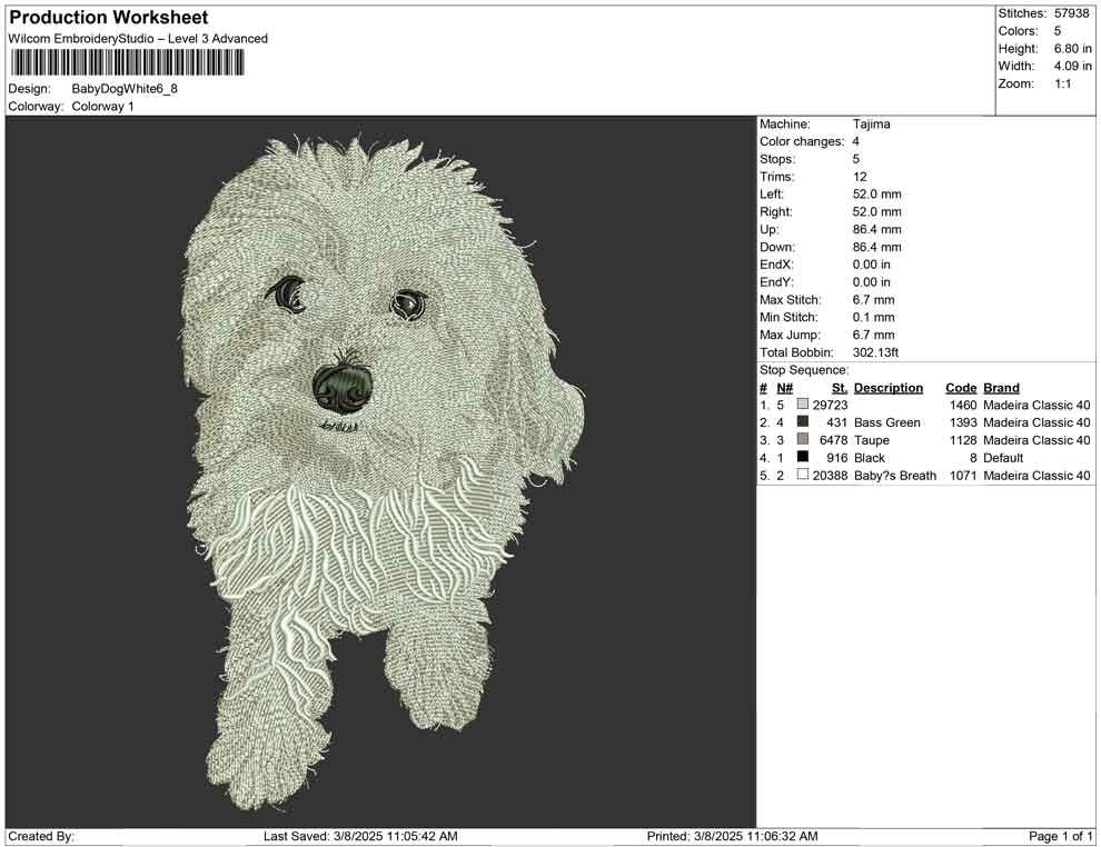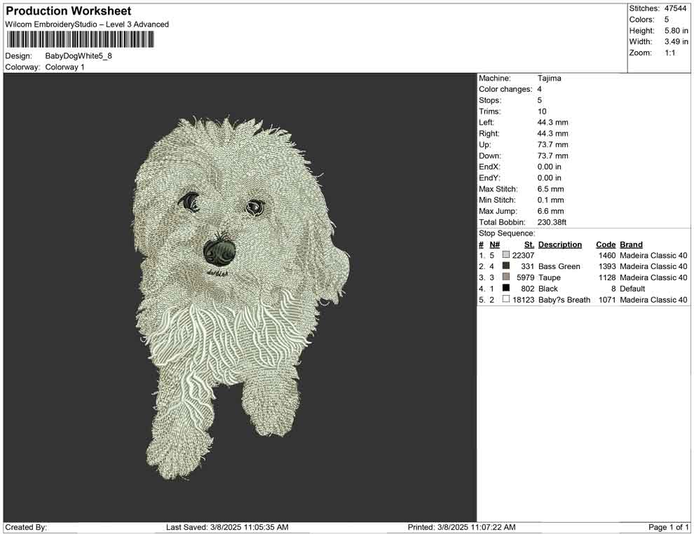 Baby Dog White Embroidery Design