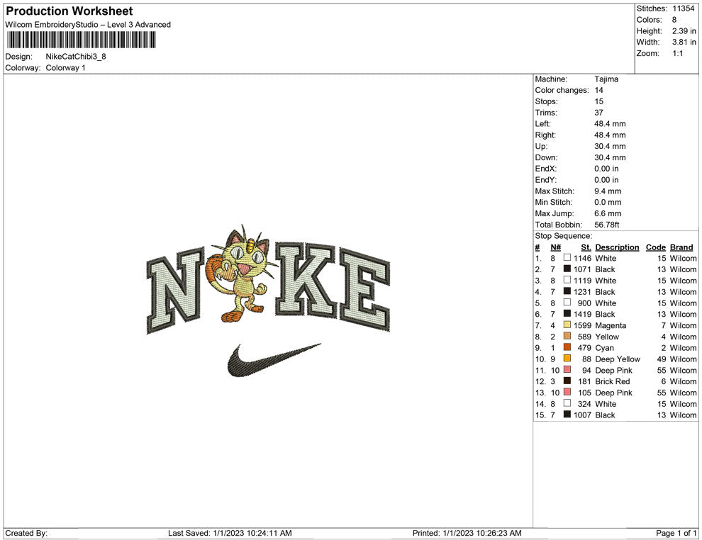 Nike Cat Chibi sembroidery design