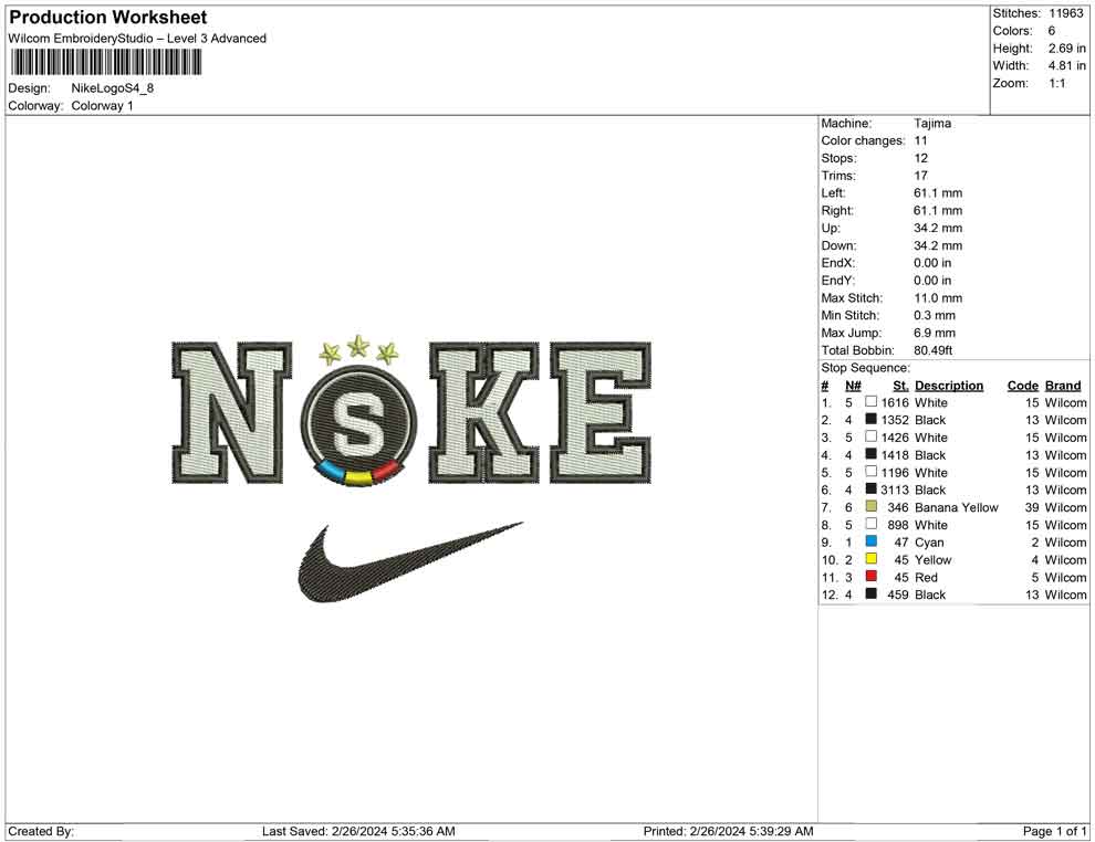 Niken Logo S embroidery designs