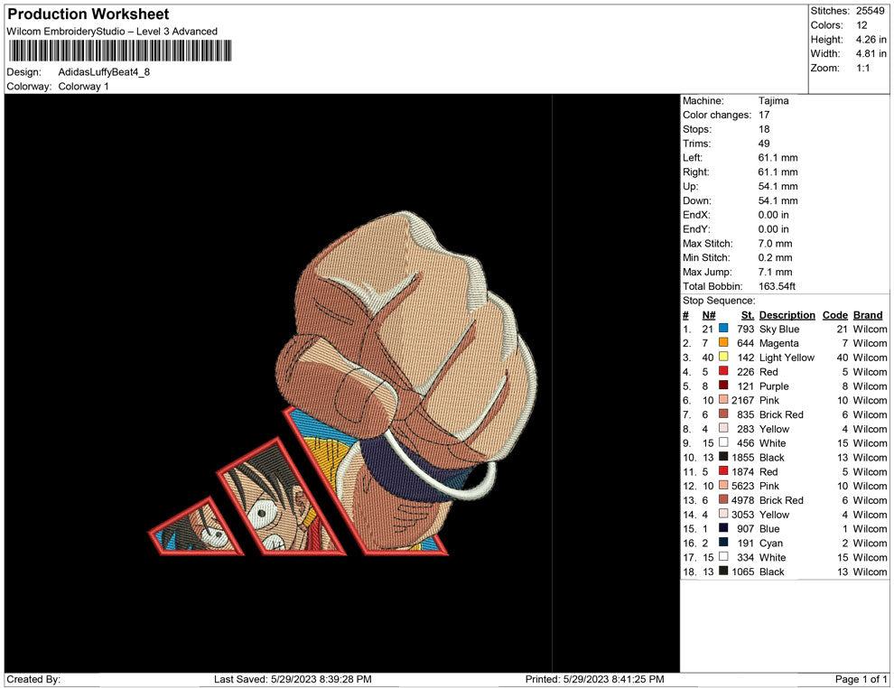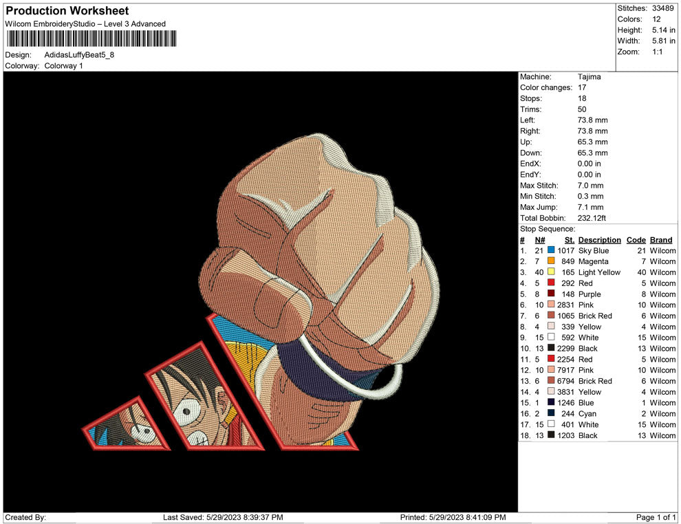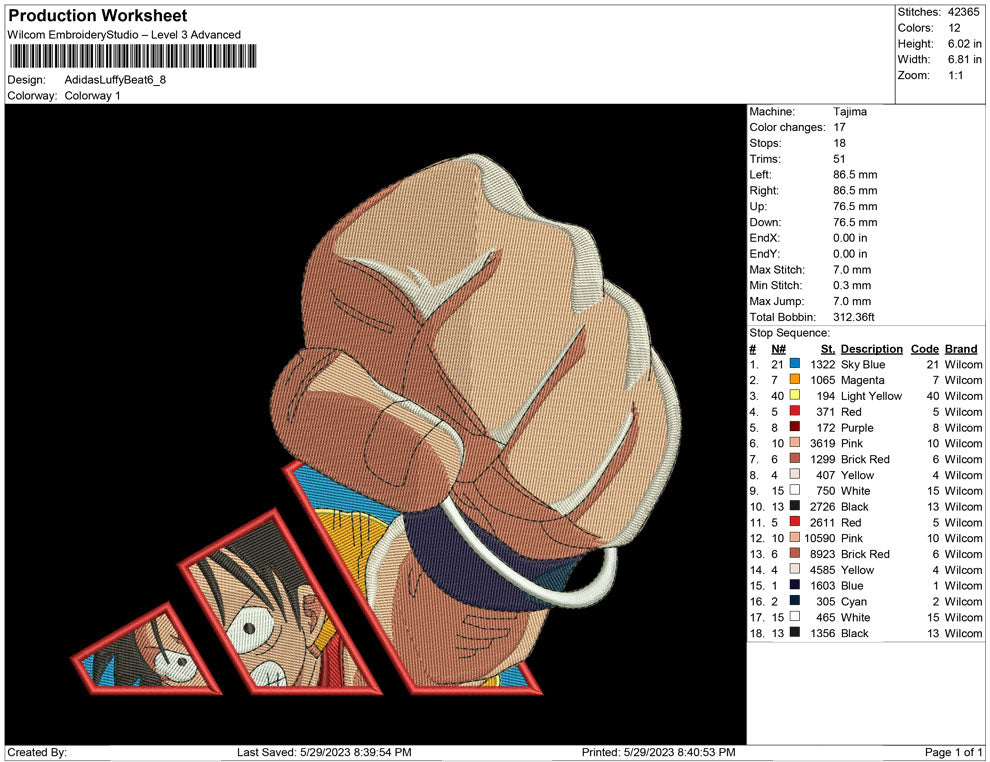Adidas Luffy beat embroidery design