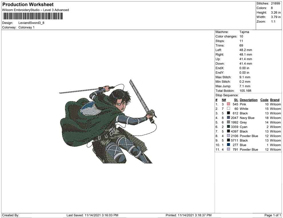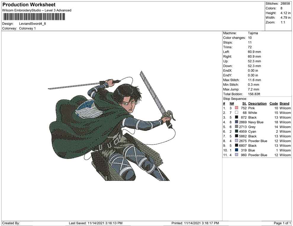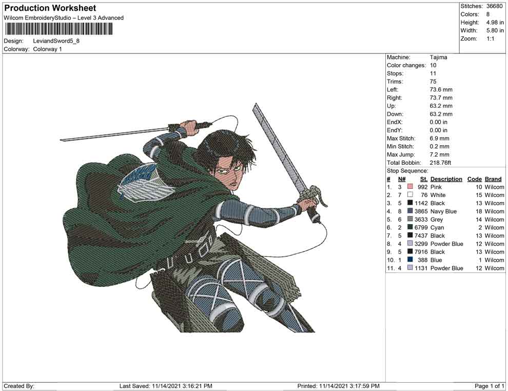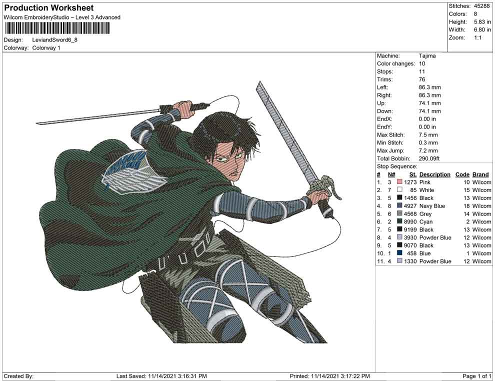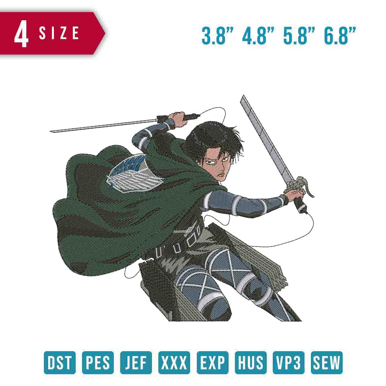 Levi and Sword embroidery design