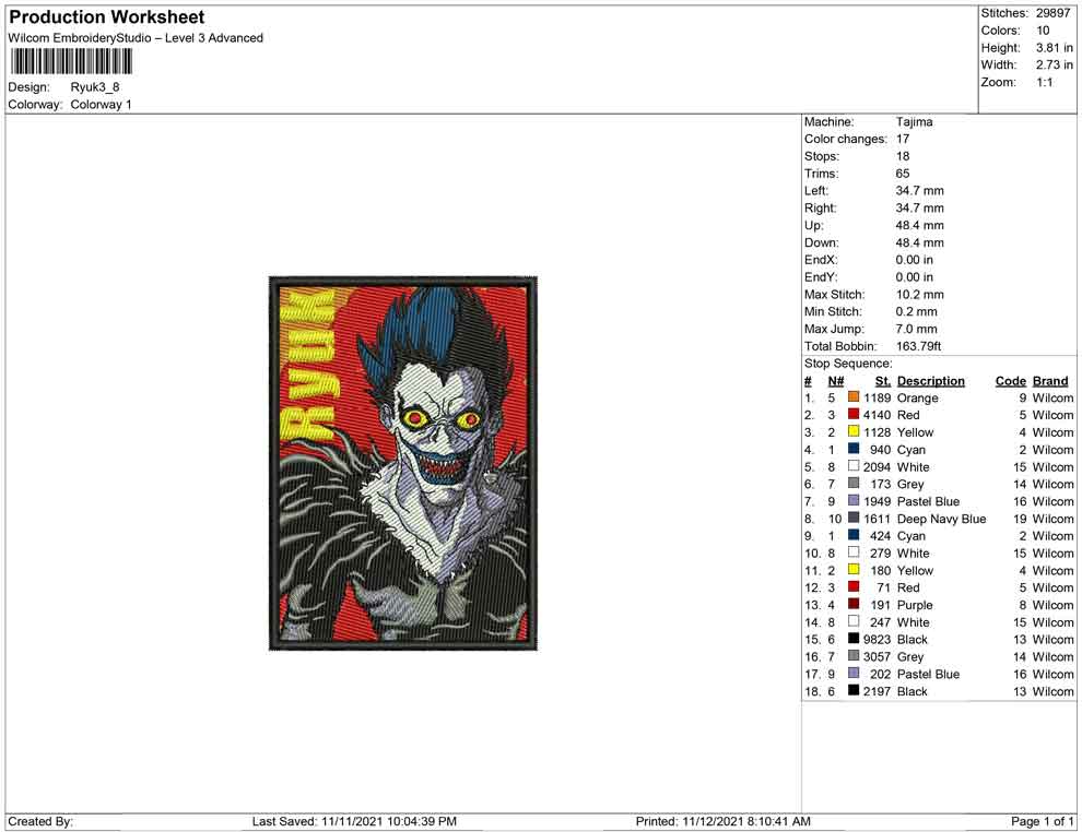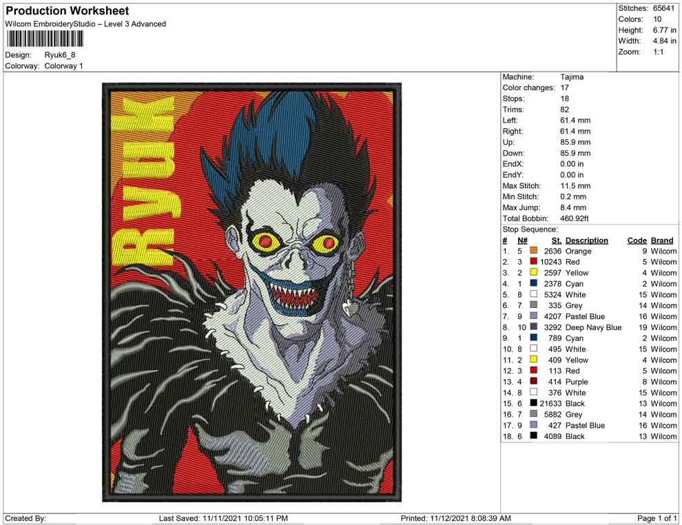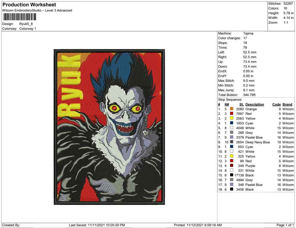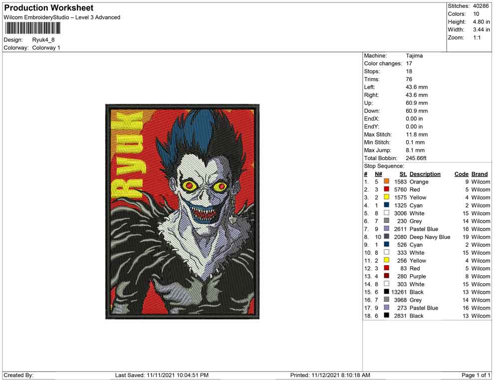 Ryuk embroidery design