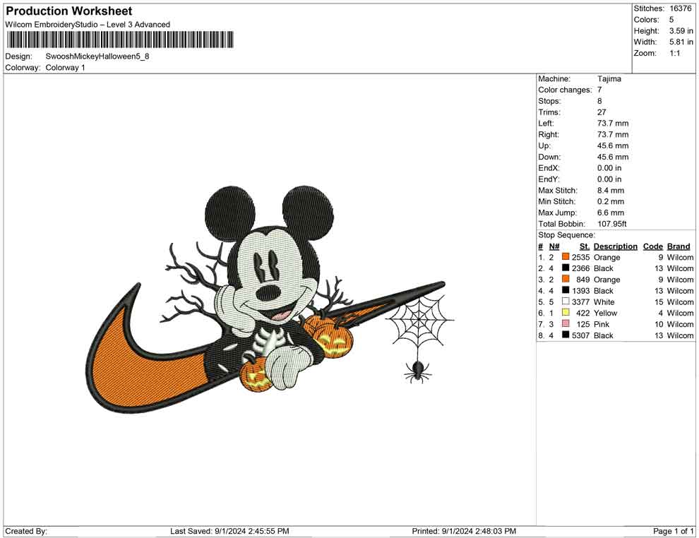 Swoosh Mickey Halloween embroidery design