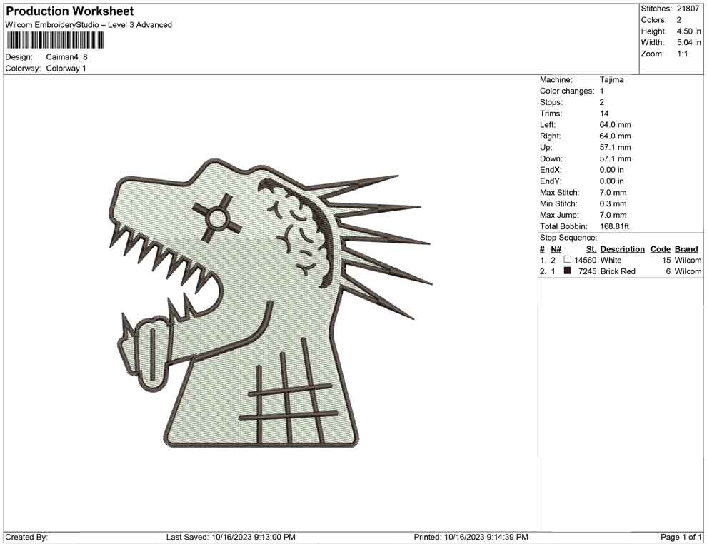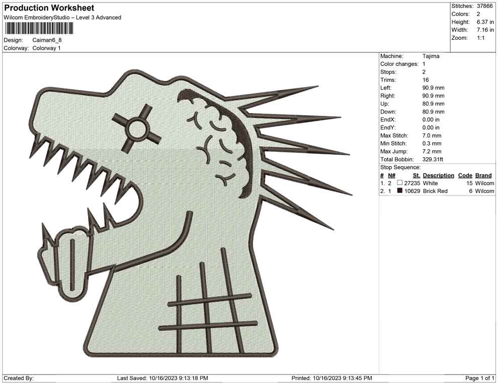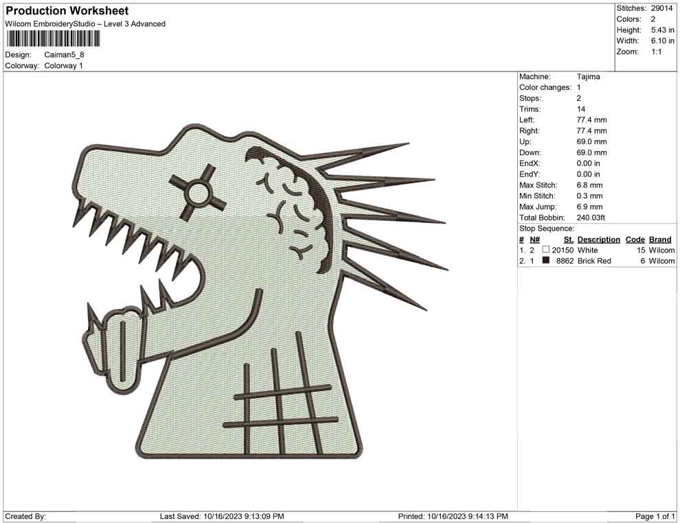 Caiman embroidery design
