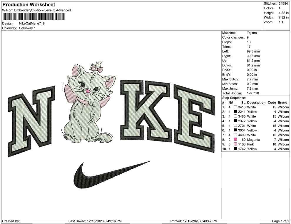 Nike Cat Marie embroidery design