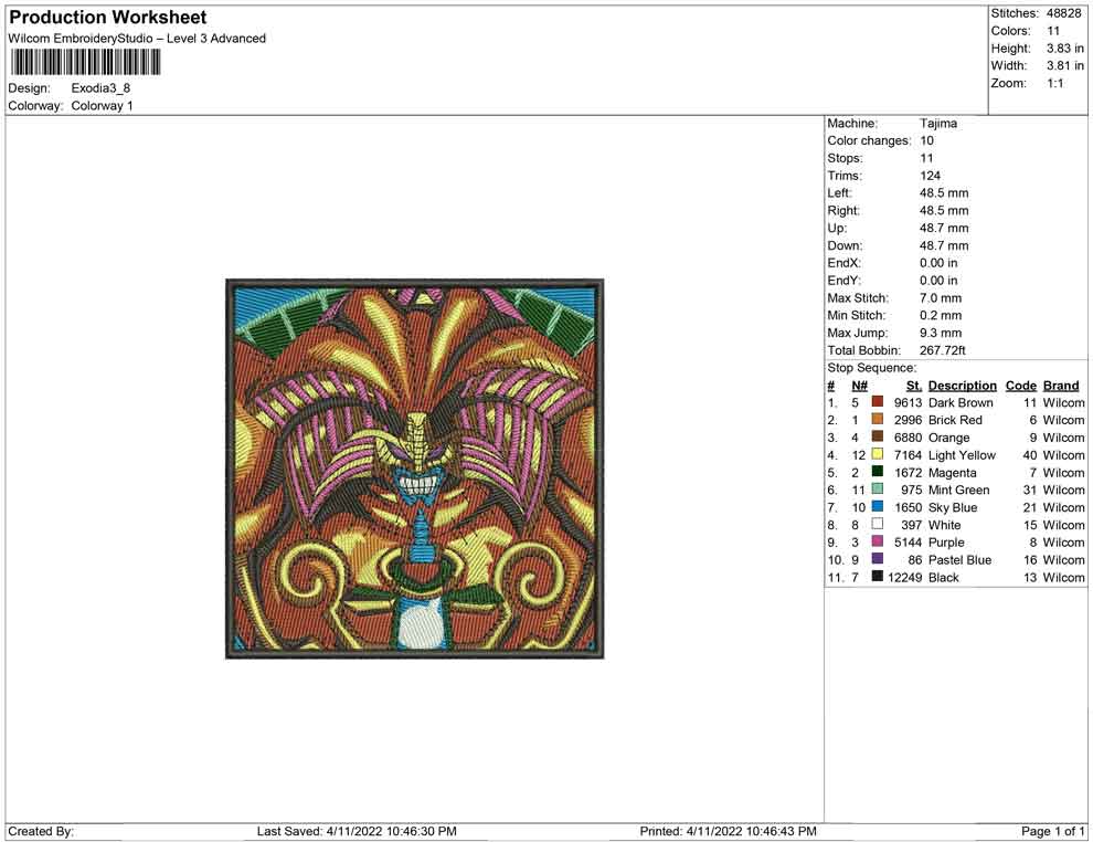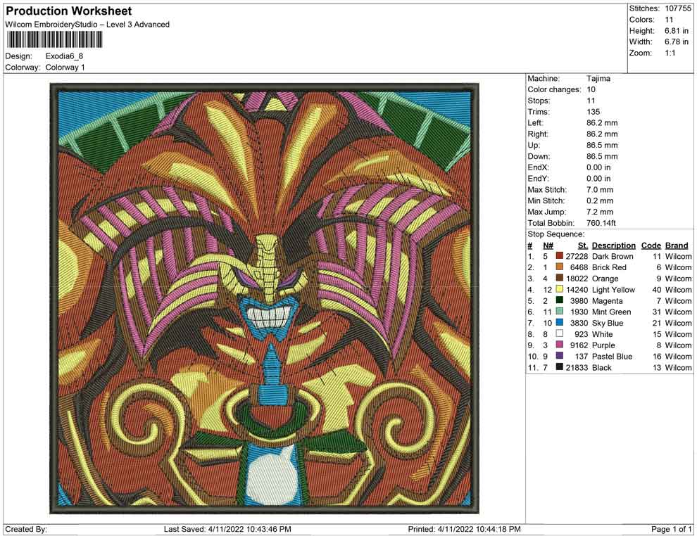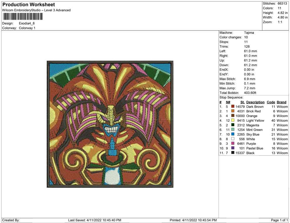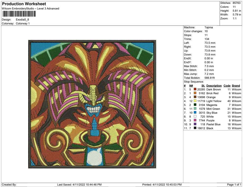 Exodia yu gi oh embroidery design