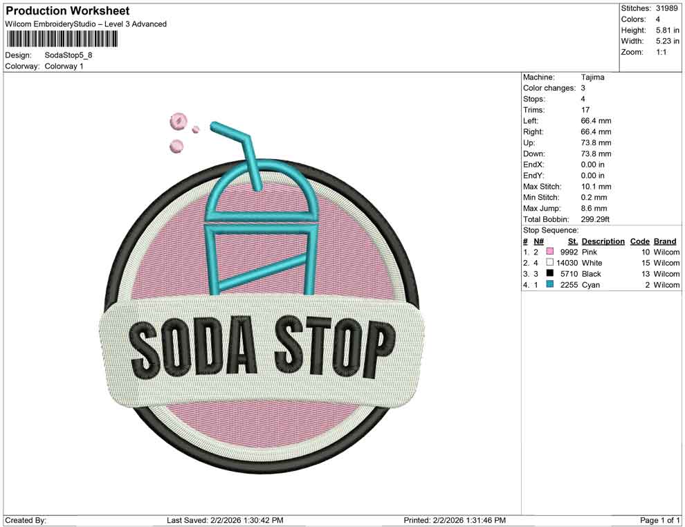 Soda Stop embroidery design