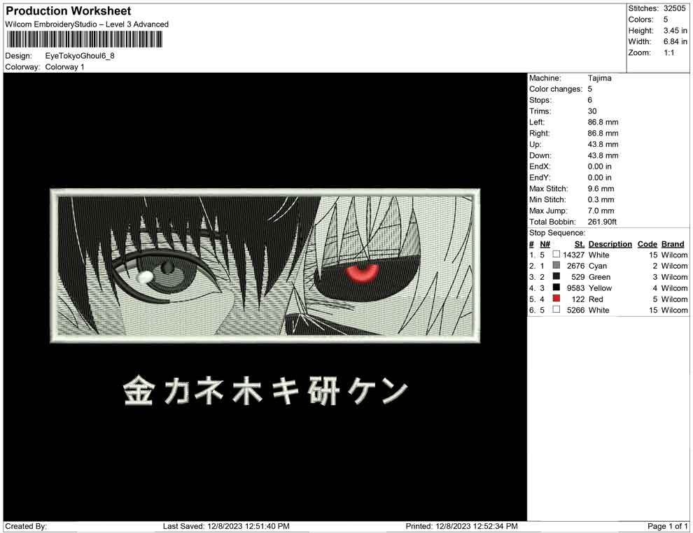 Eye Tokyo Ghoul embroidery design