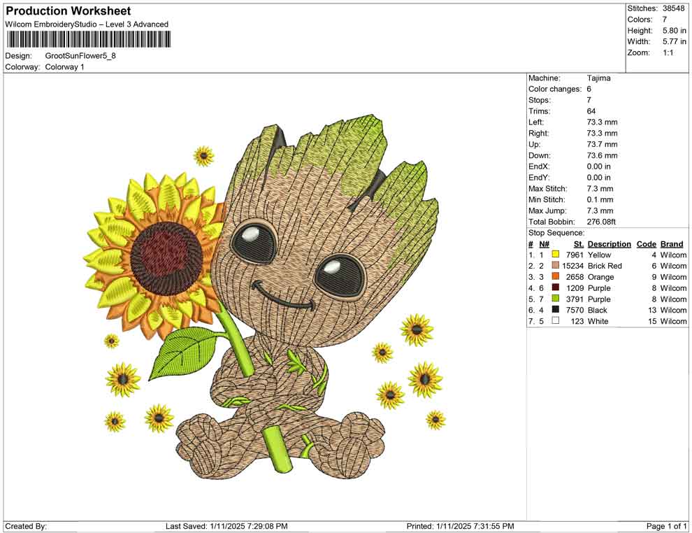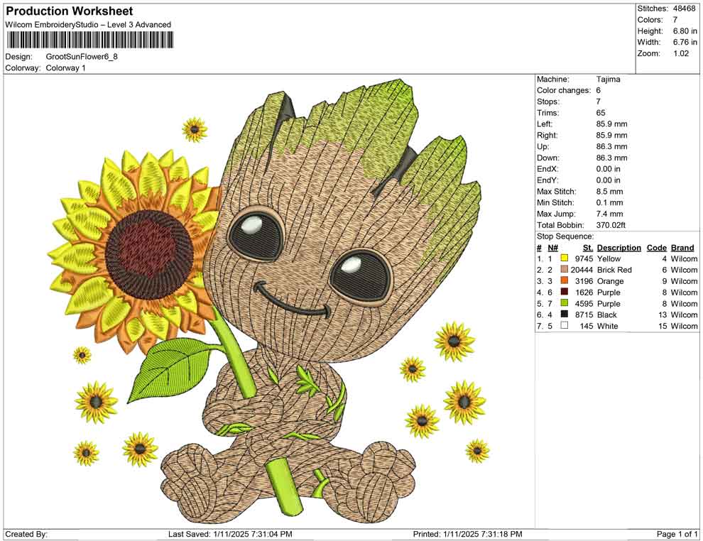 Groot Sun Flower embroidery design