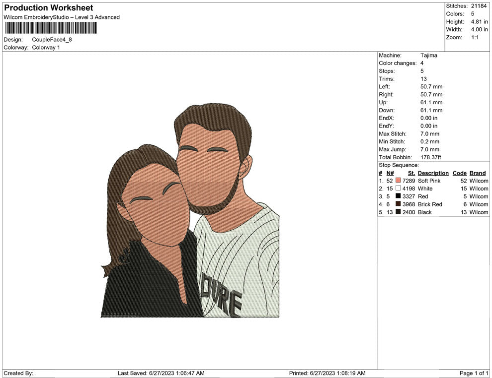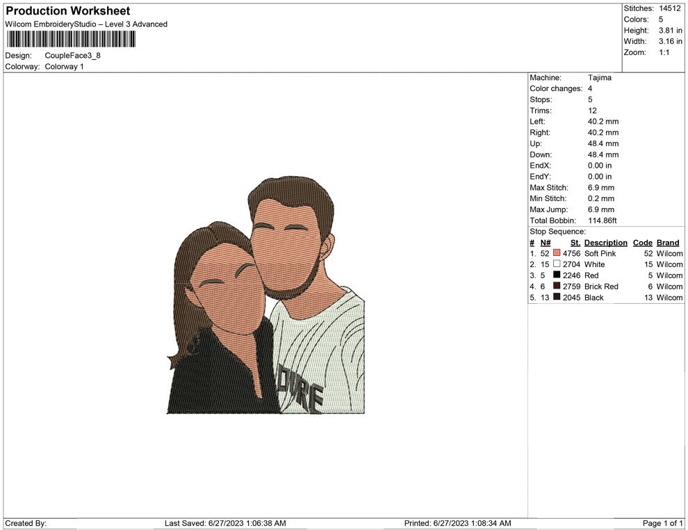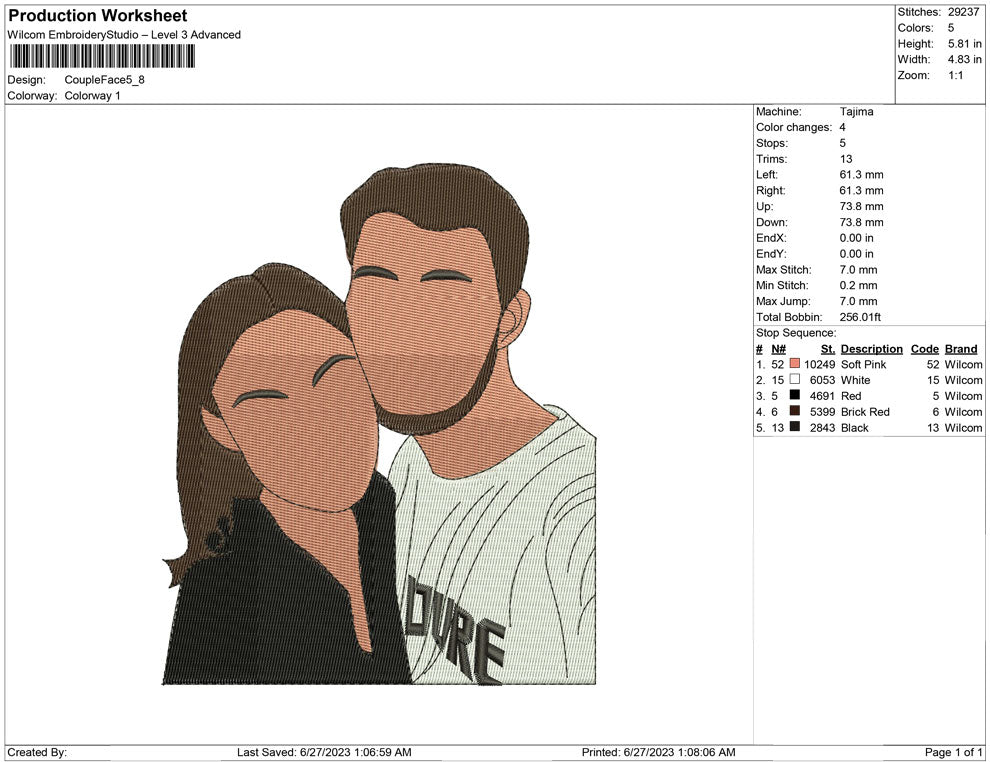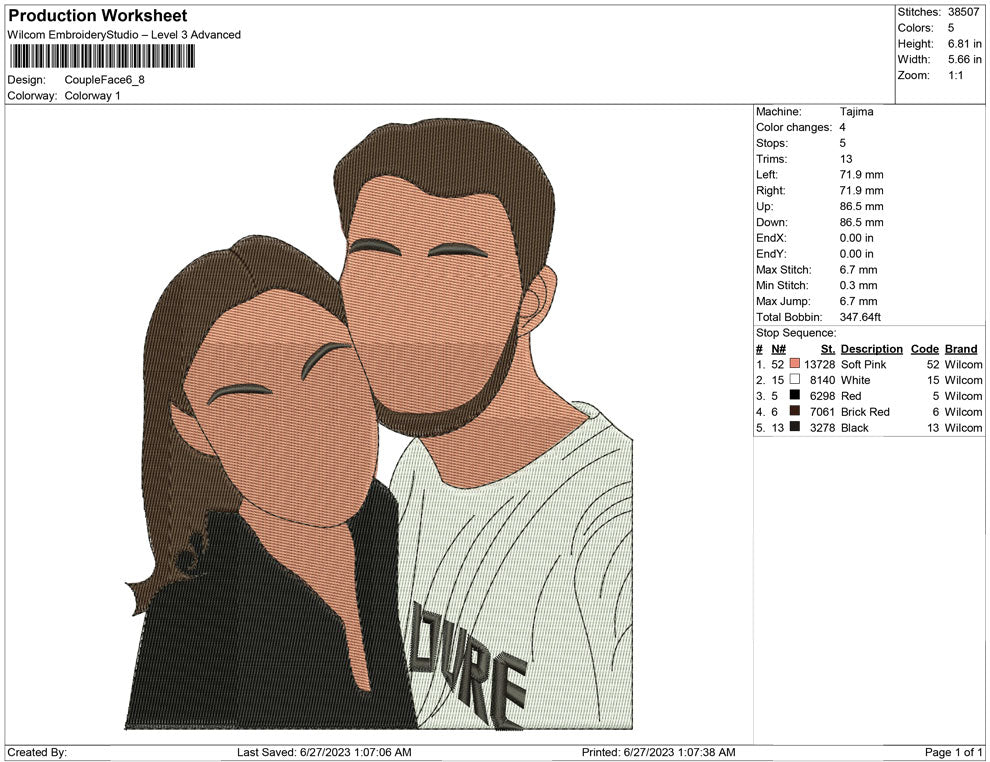 Couple Face embroidery design