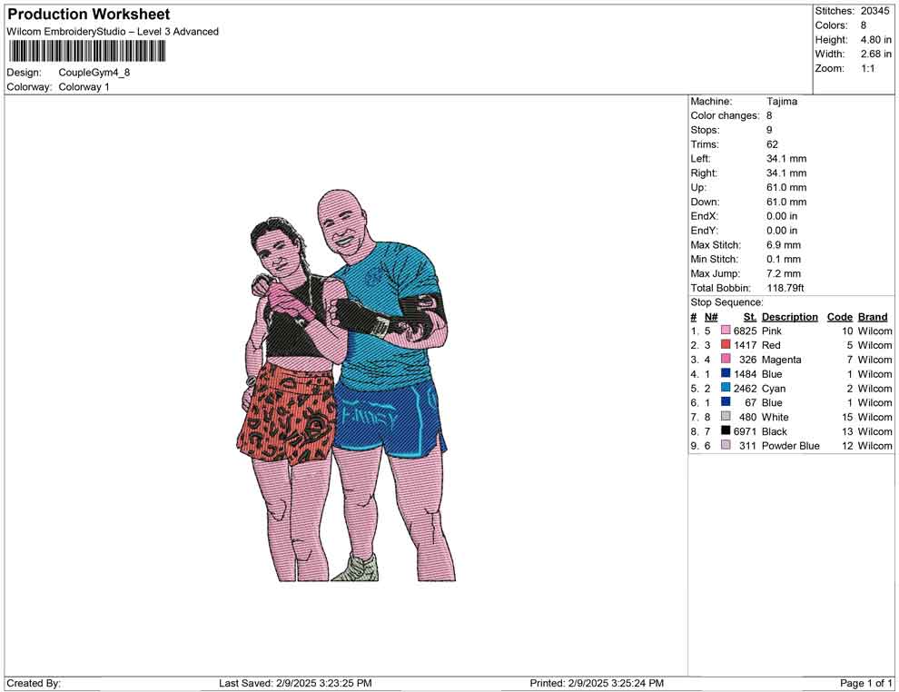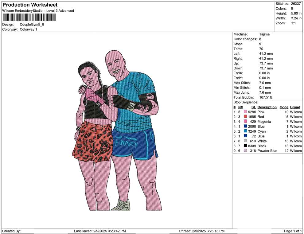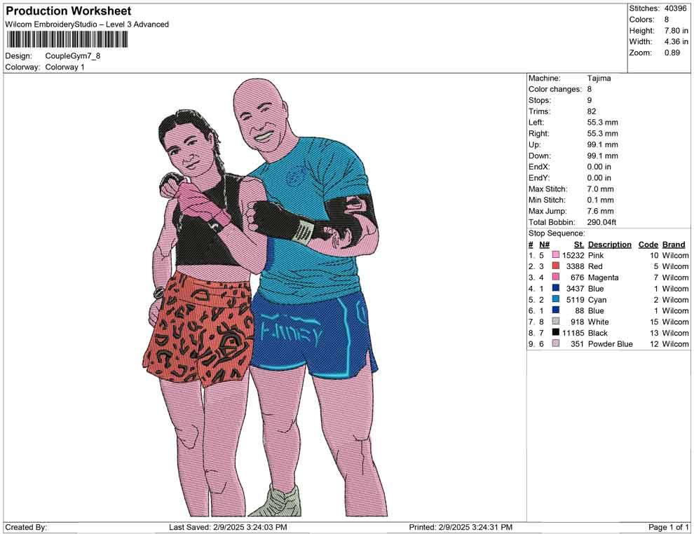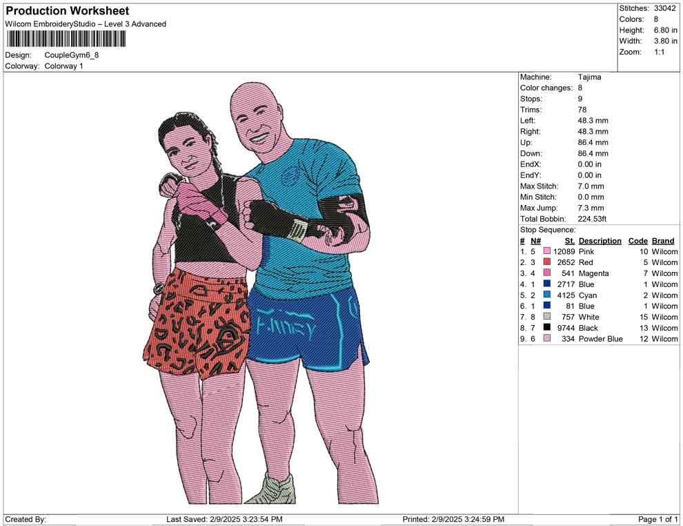 Couple Gym embroidery design