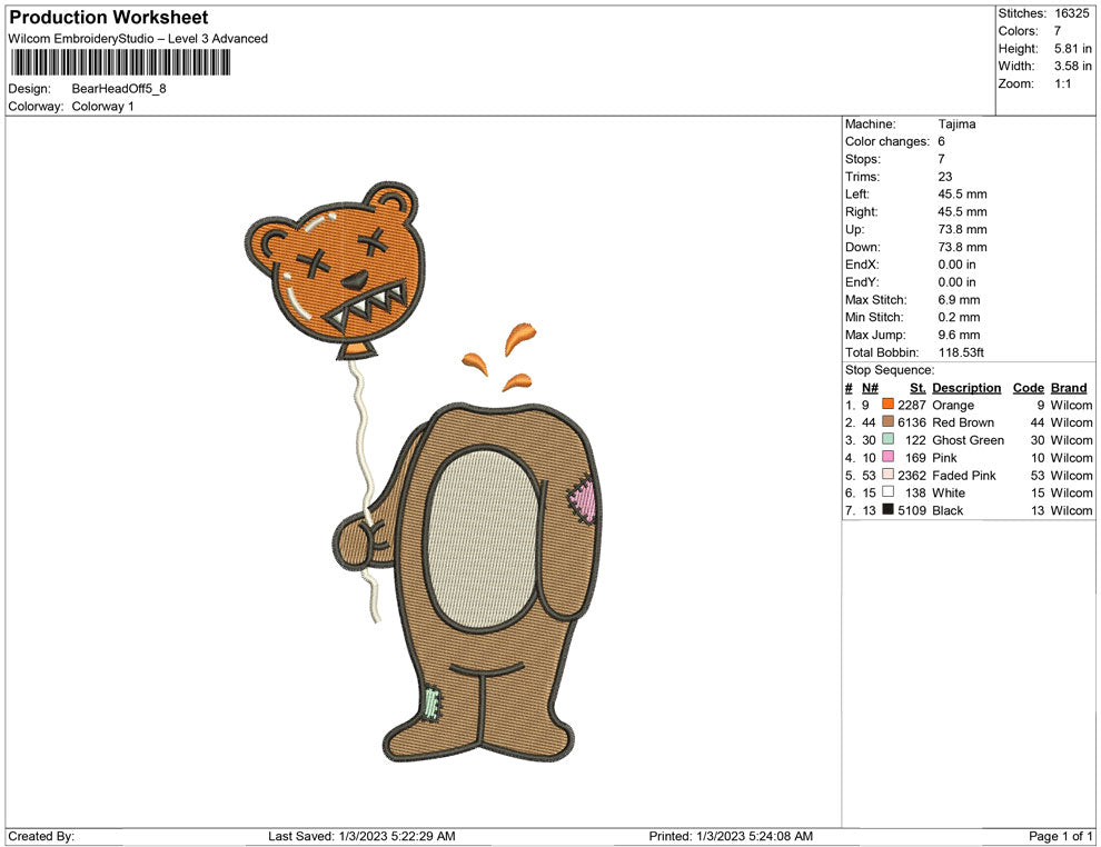 Bear Head off embroidery design