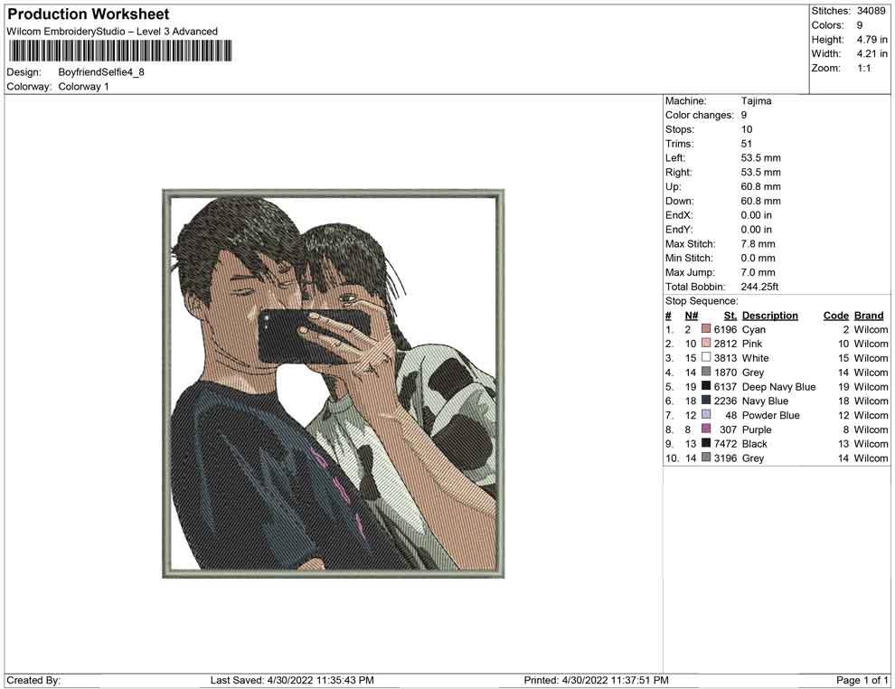 Boyfiend Selfie embroidery design