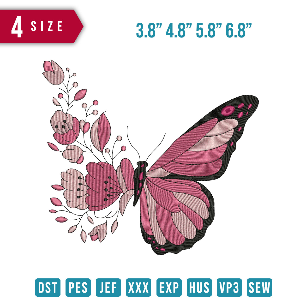 Butterfly Flower embroidery design
