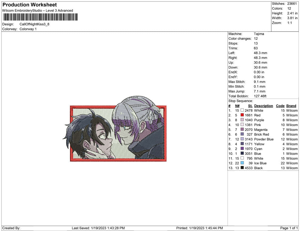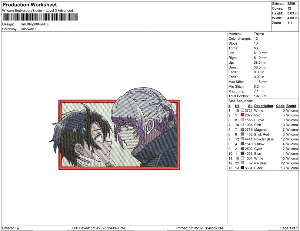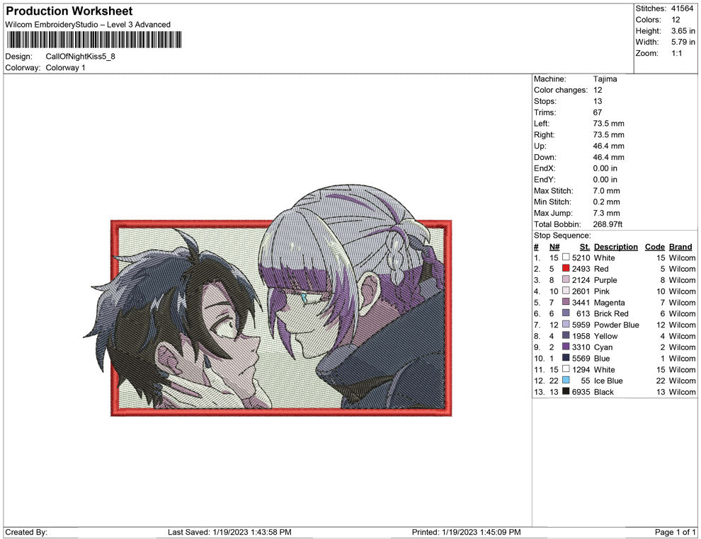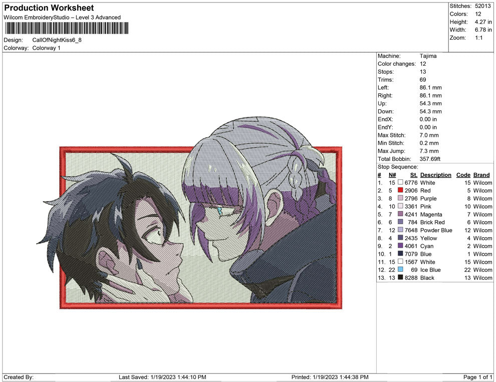 Call of the Night kiss embroidery design