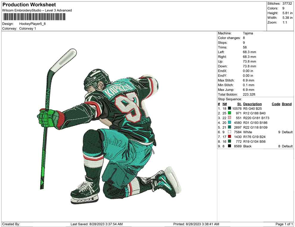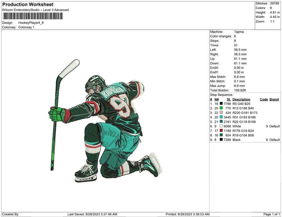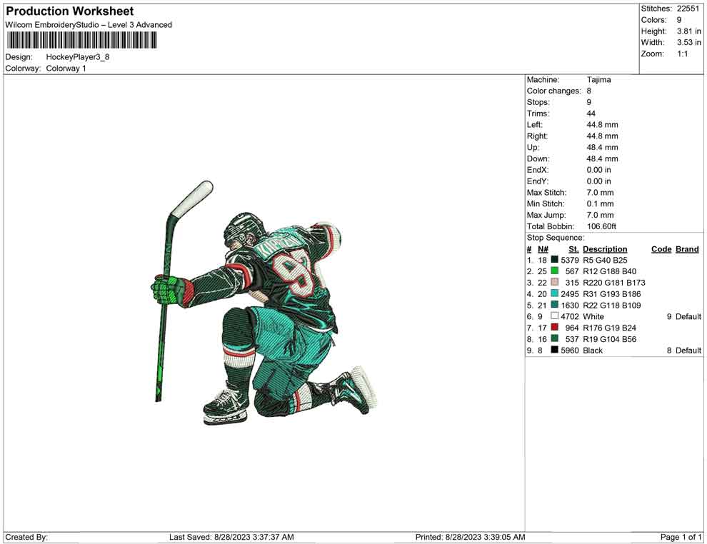 hockcey player Embroidery design