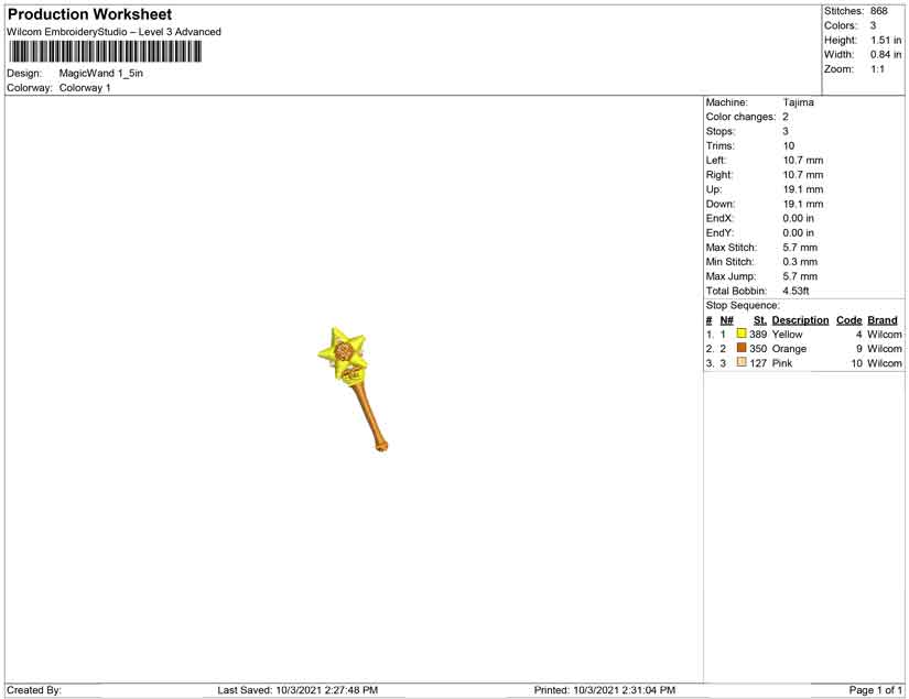 Magic wand embroidery design