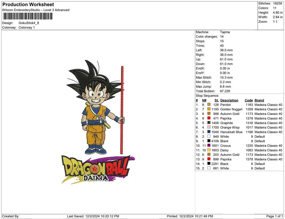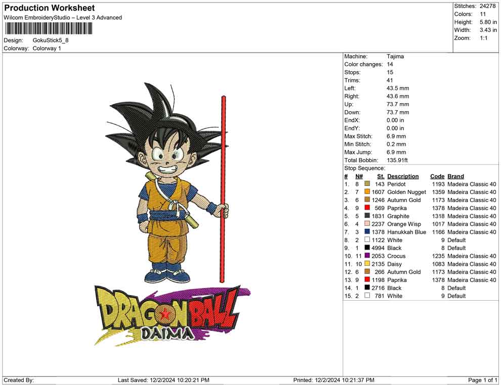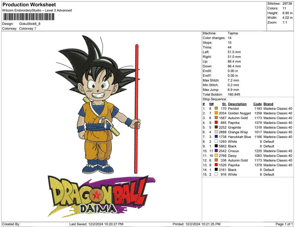 Goku Stick Embroidery design