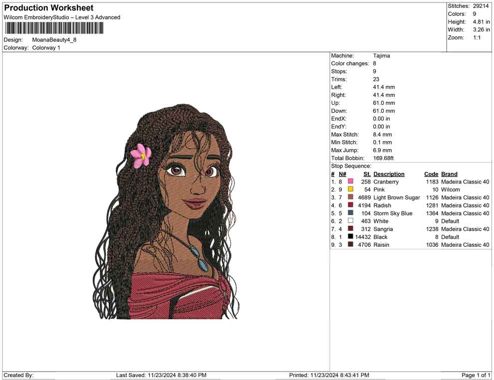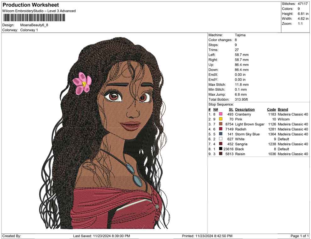 Moana Beauty embroidery design