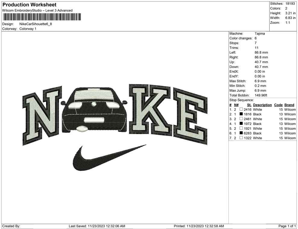 Nike Car Silhouette embroidery design