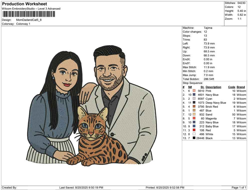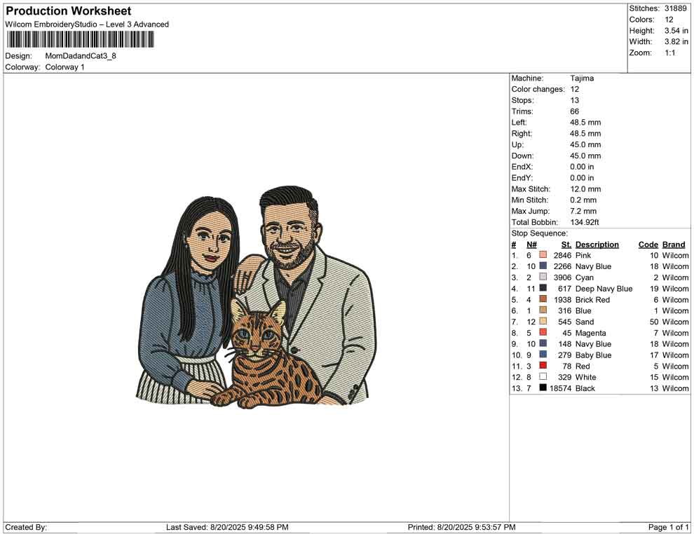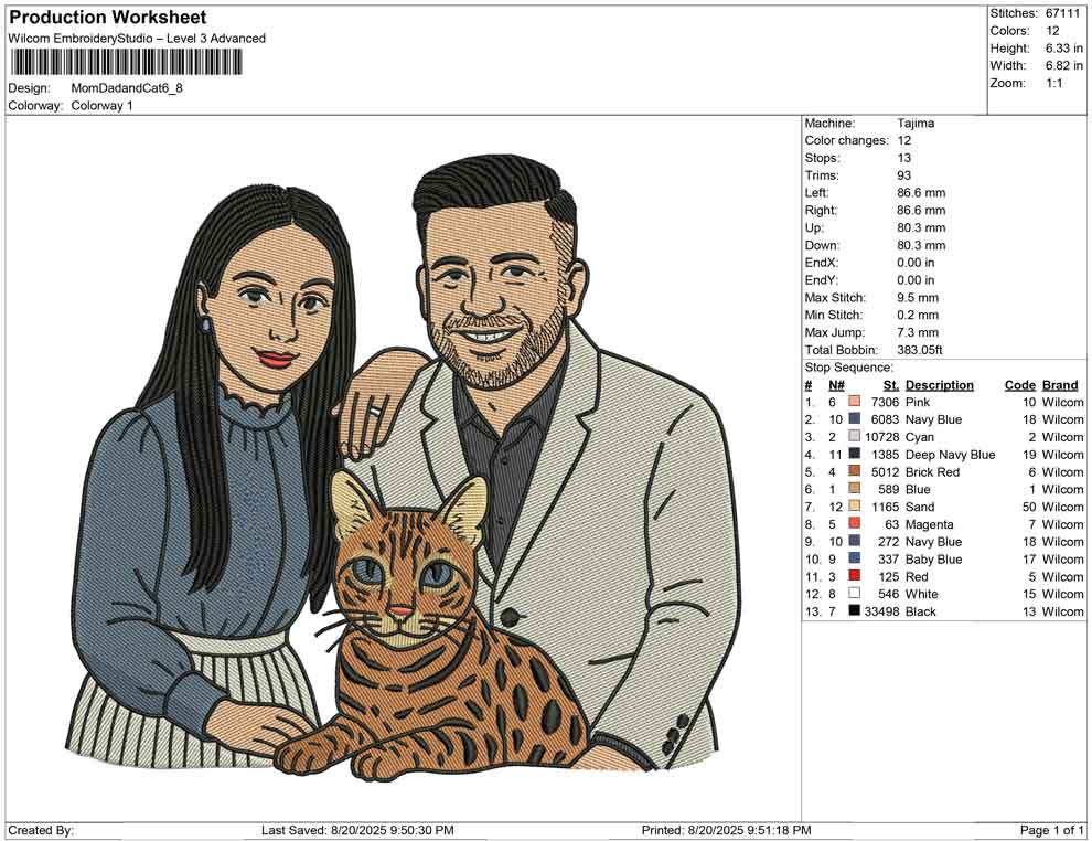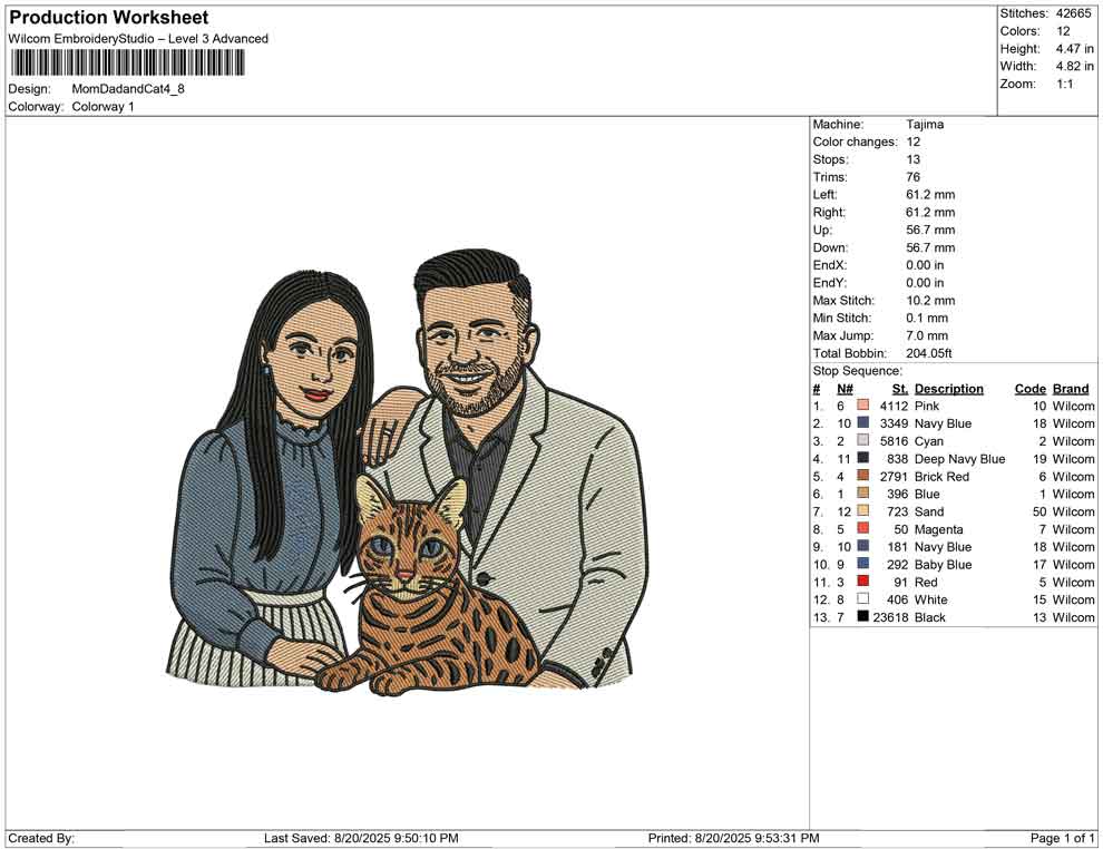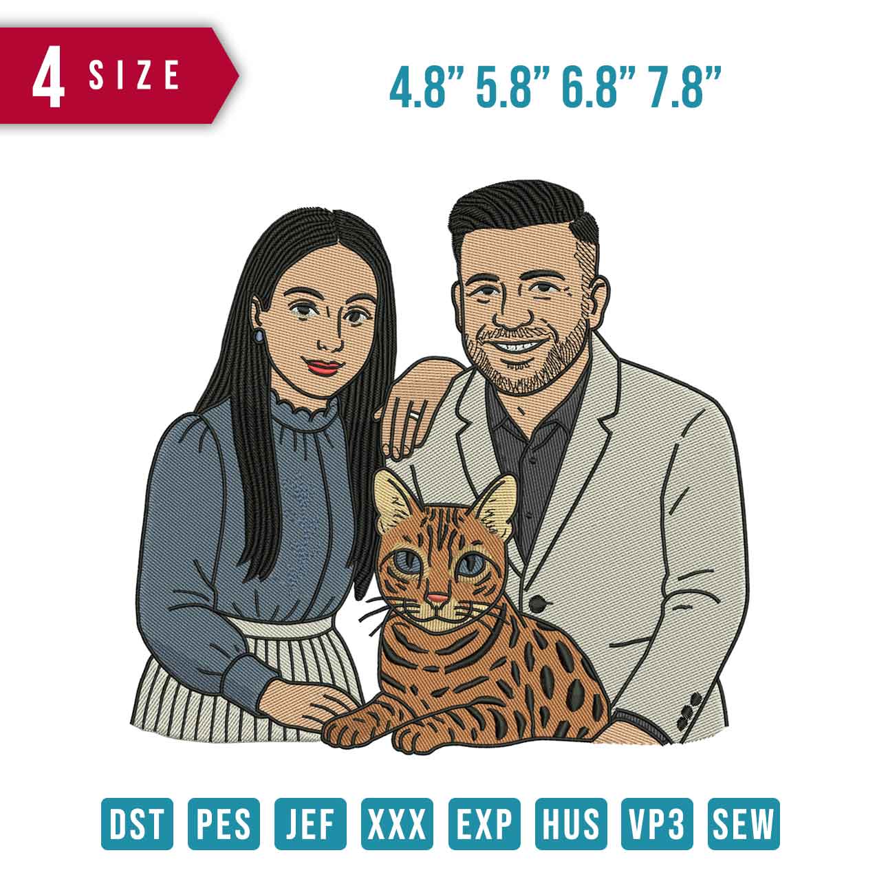 Mom Dad and Cat embroidery design