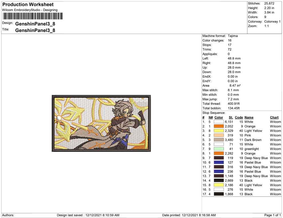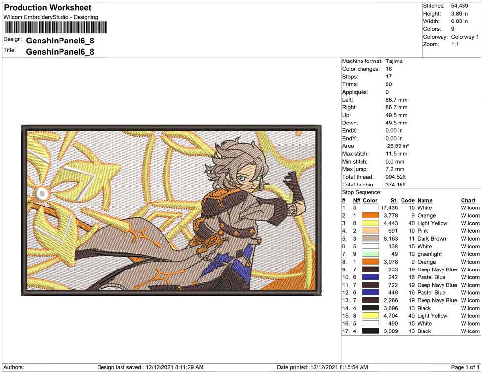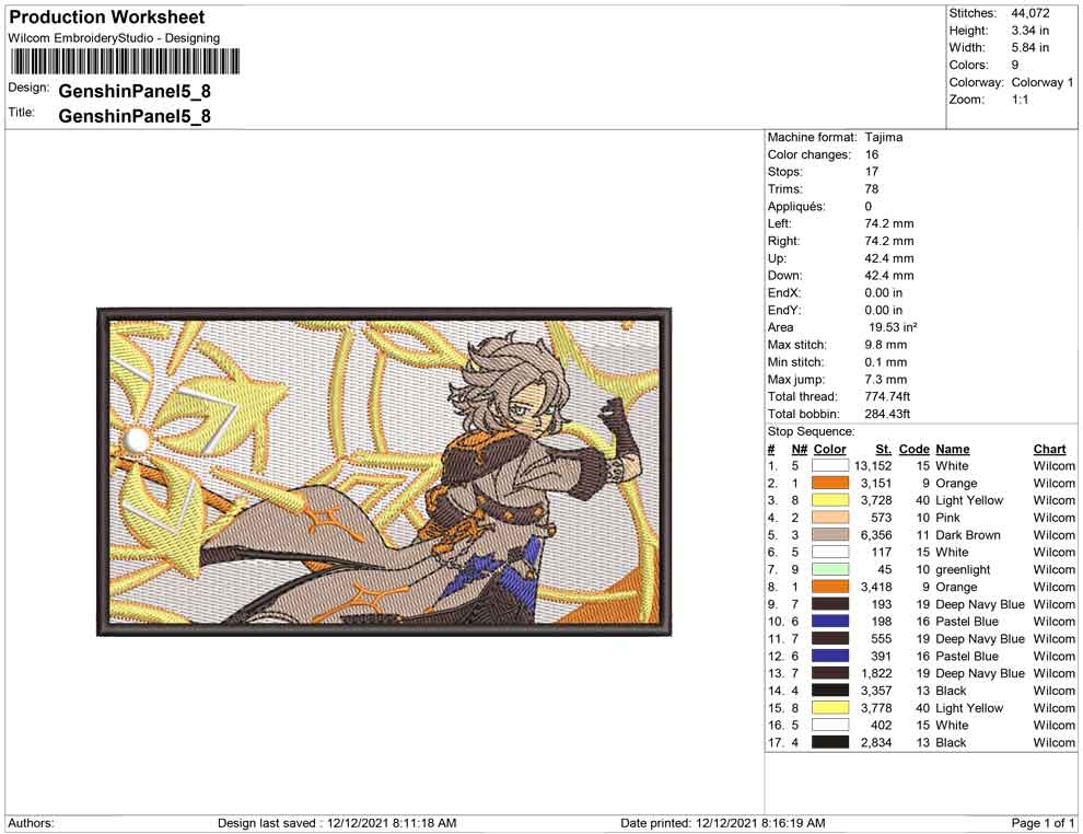 Genshin Panel embroidery design