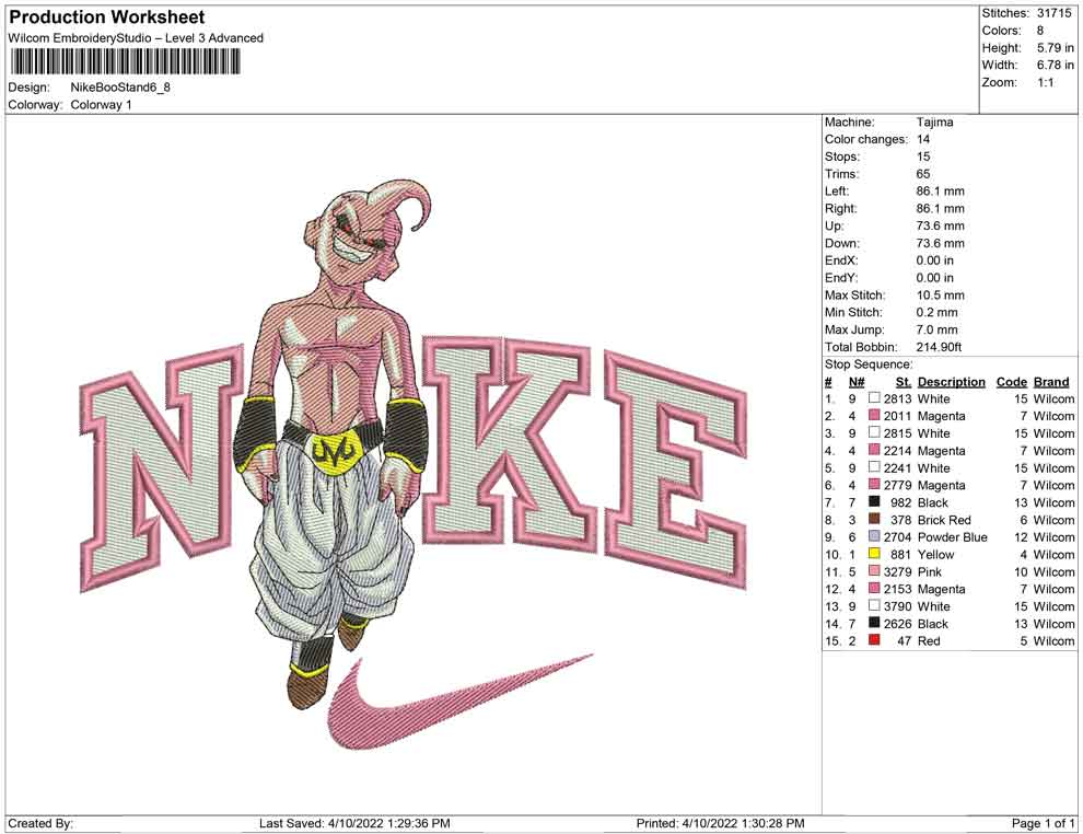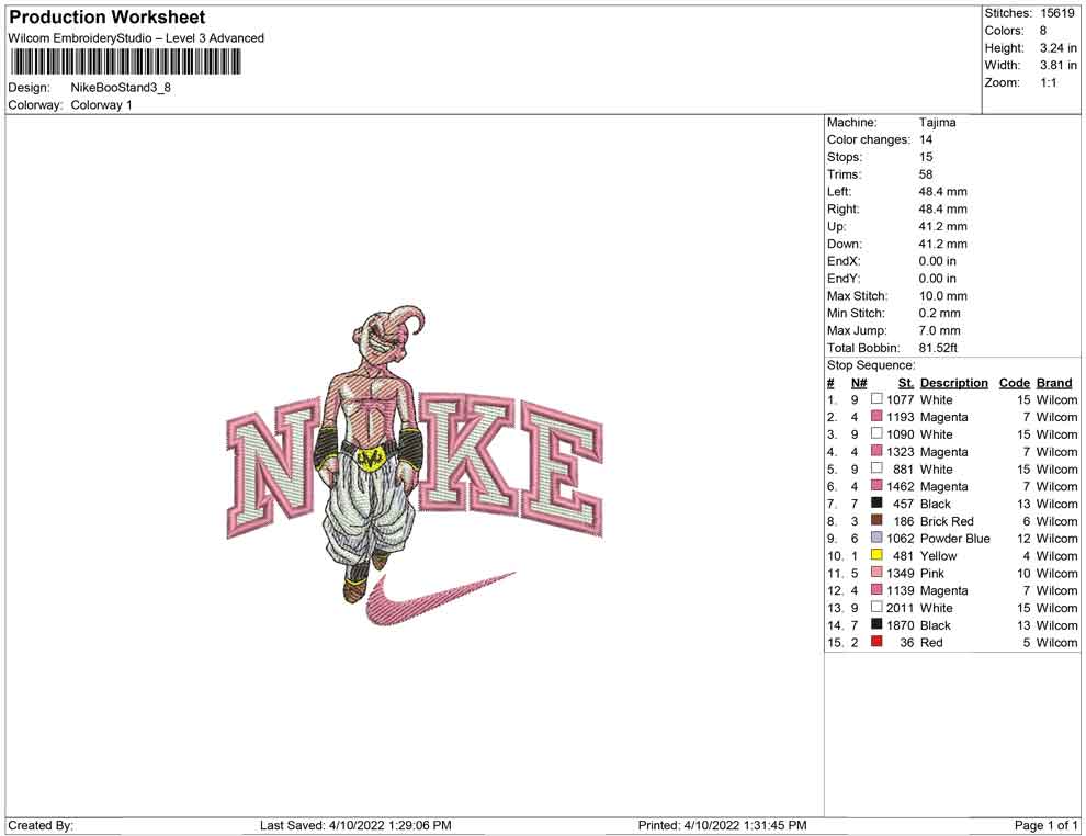 Nike majin Boo Stand embroidery design