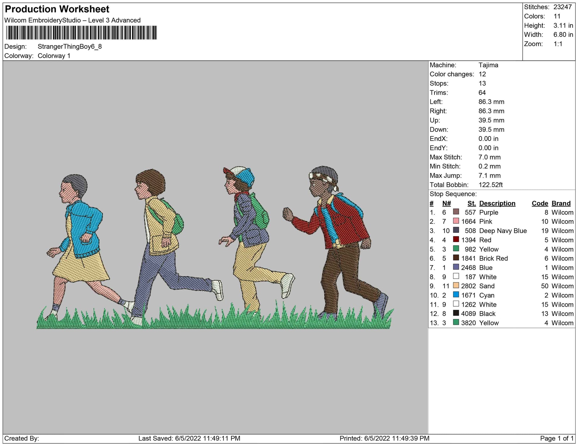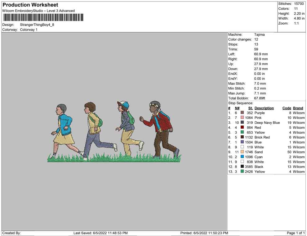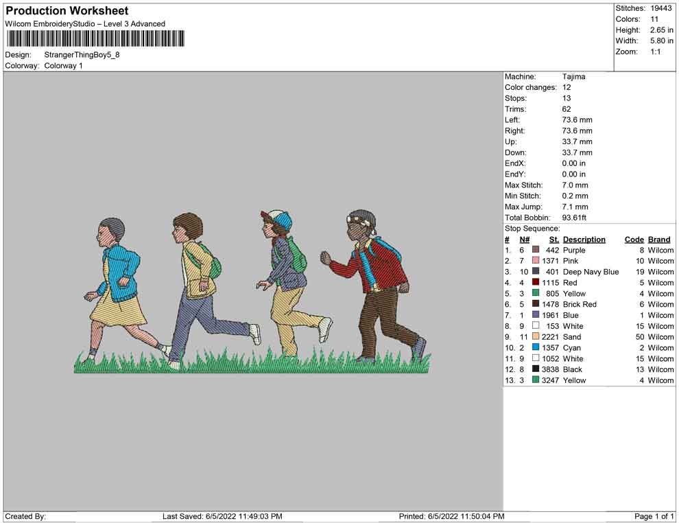 Stranger Things Boy Run embroidery design