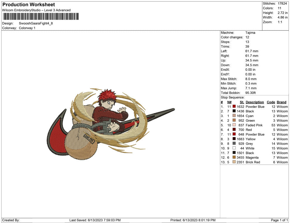 Swoosh Gaara Fight is an embroidery design featuring bold and dynamic visuals to showcase your style. The intricate pattern and colors add a unique touch to any apparel, making it stand out from the crowd. Made with quality workmanship, this design adds a touch of sophistication and elegance to your look.