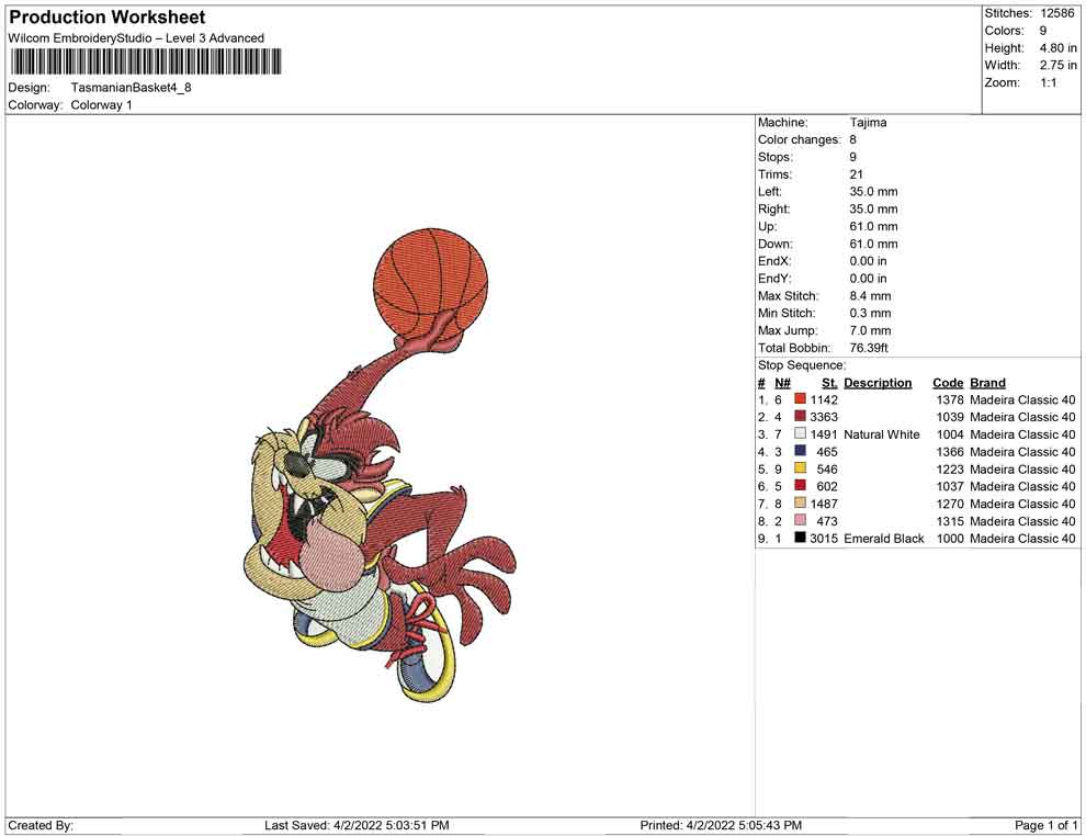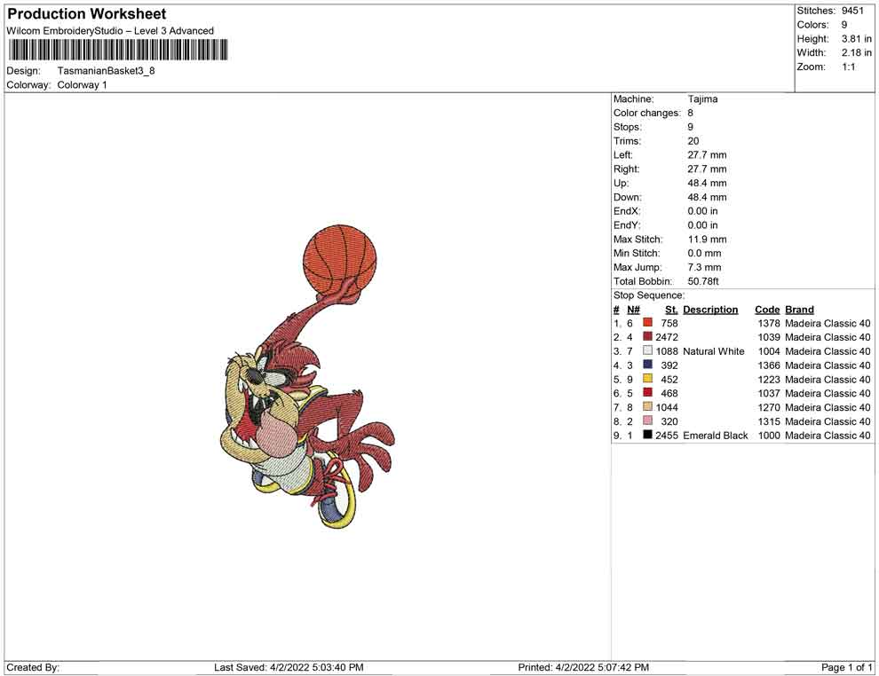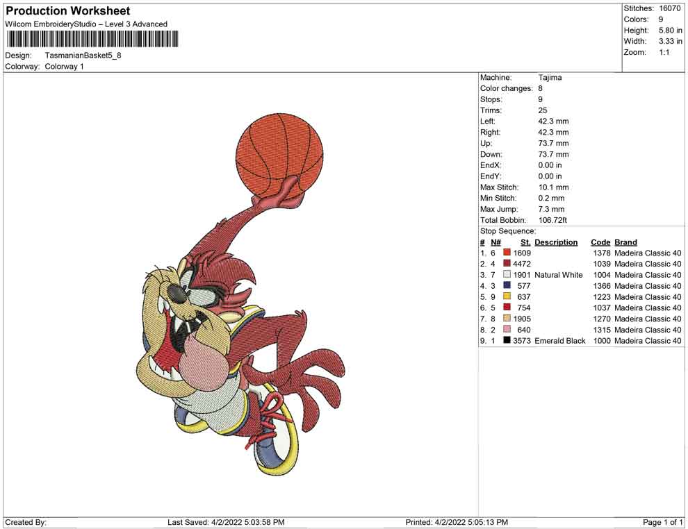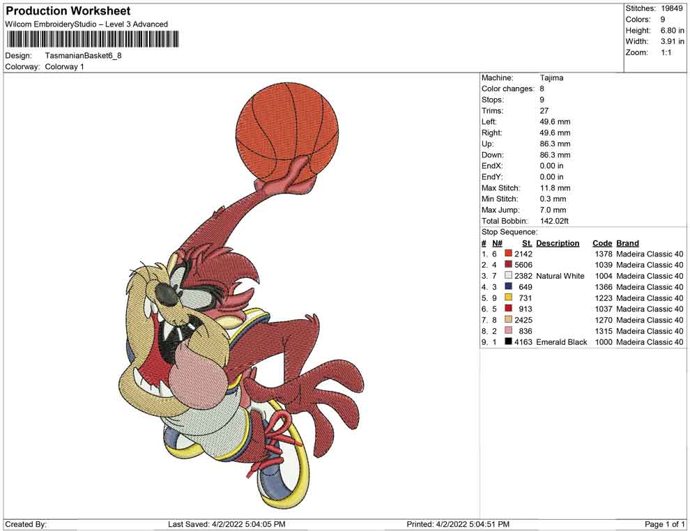 Tasmanian Basket embroidery design
