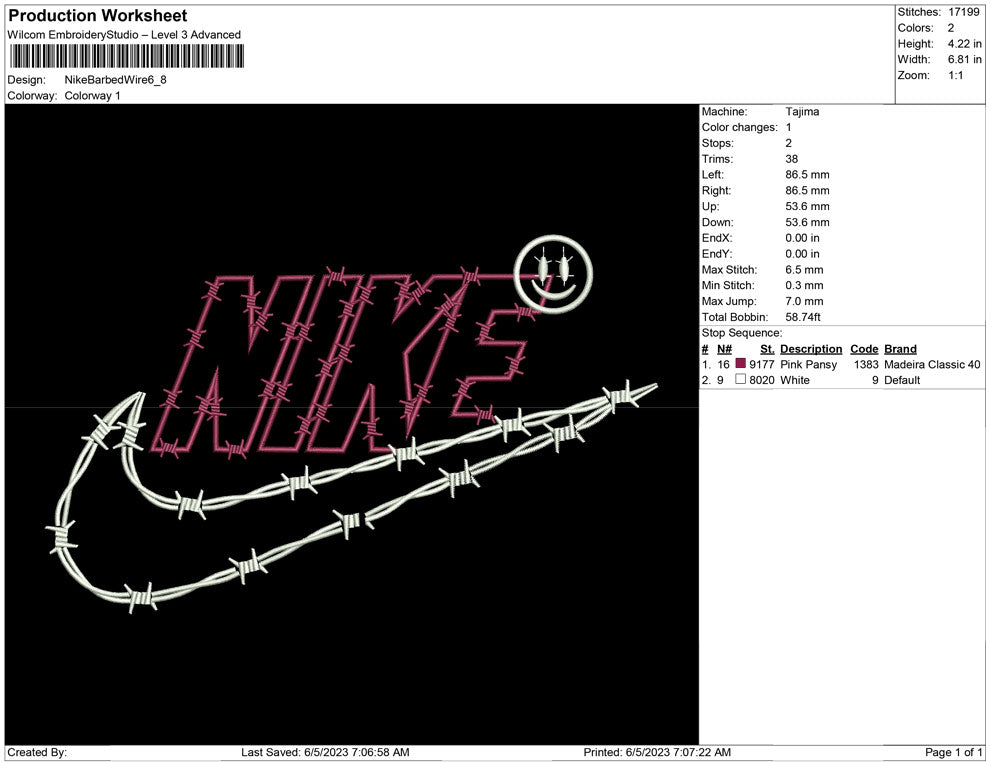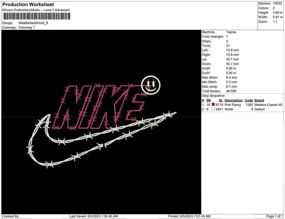 Experience the classic style of Nike Barbed Wire with this embroidery design. Complete with a quality construction and timeless design, this product is the perfect choice for athletes and fashion-minded individuals.