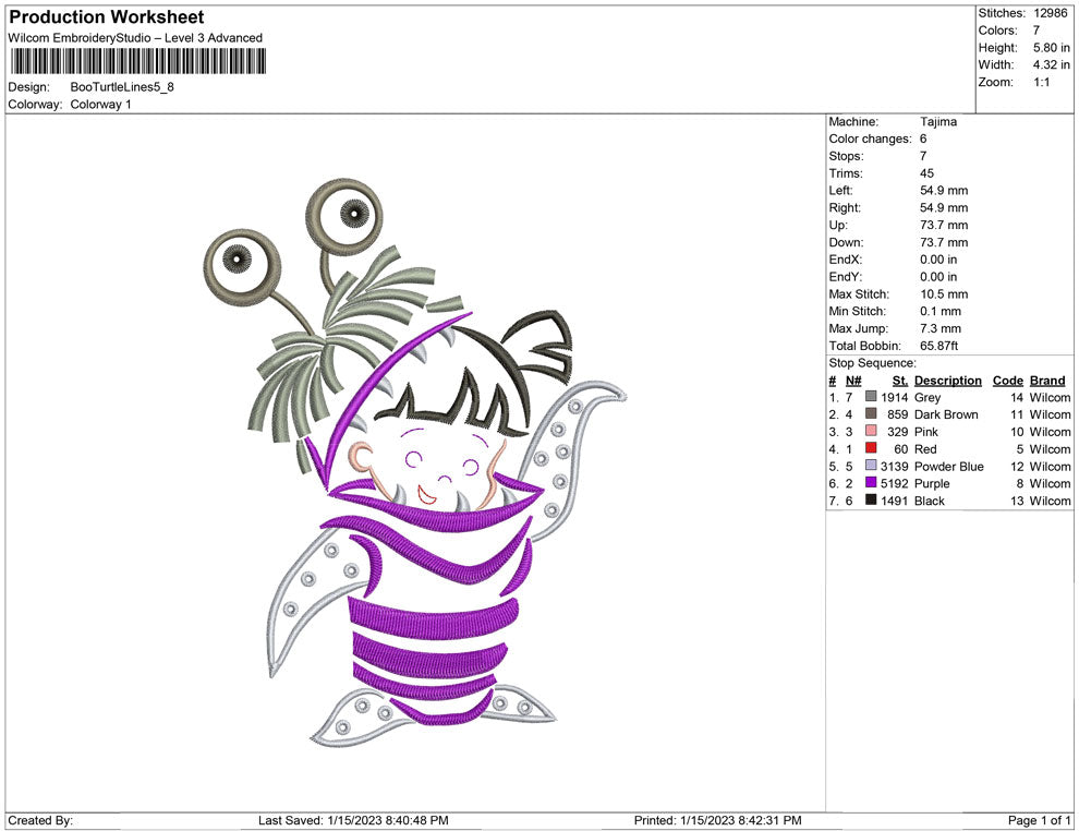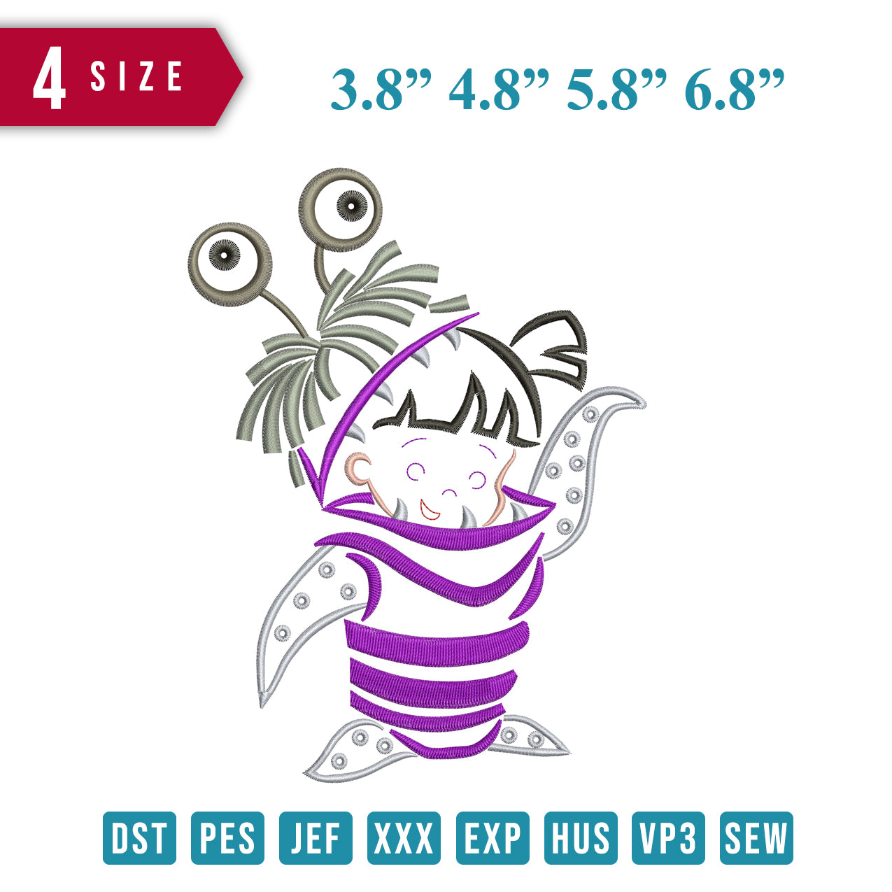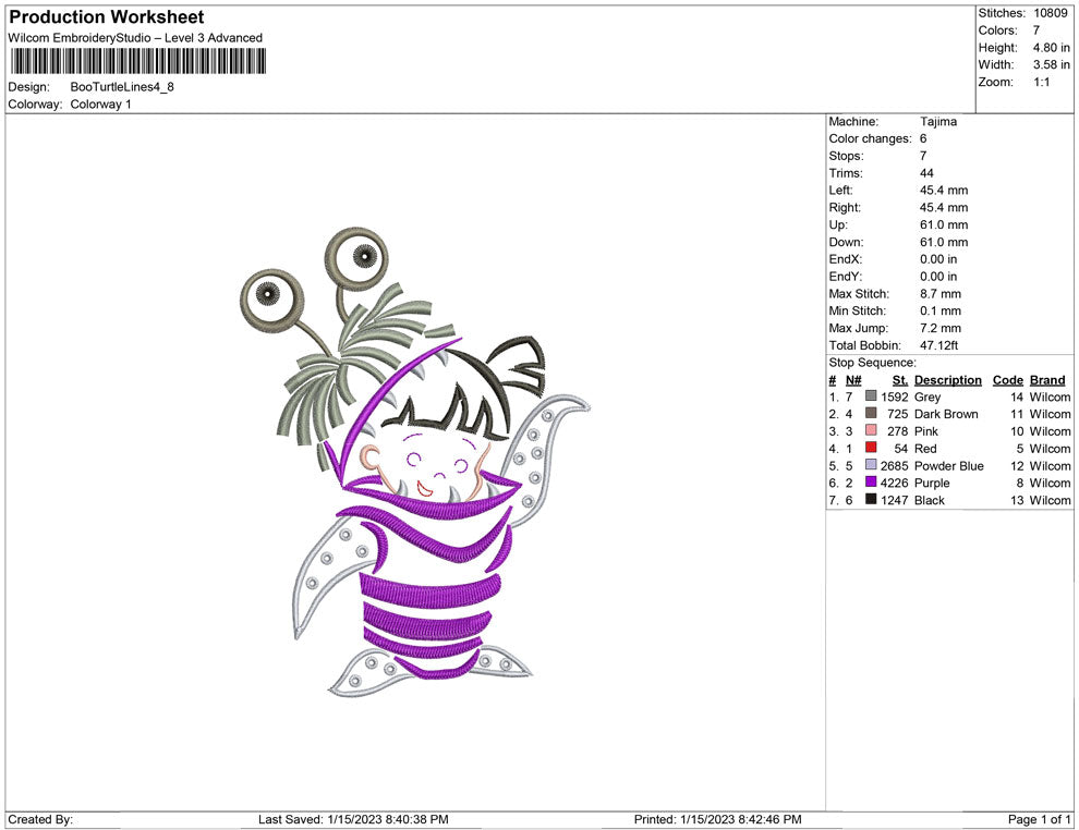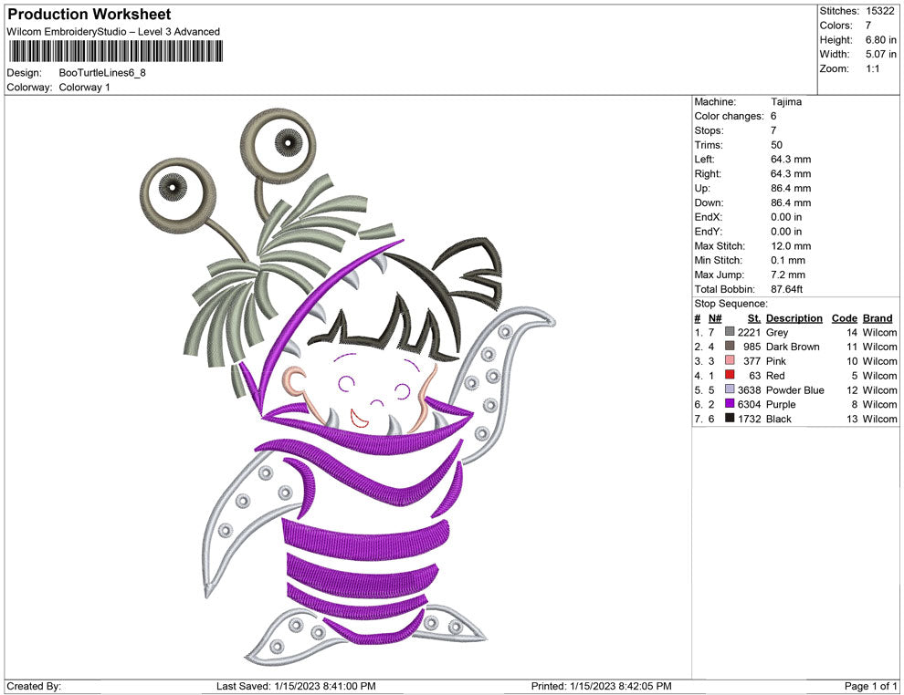 Boo Turtle Lines embroidery design