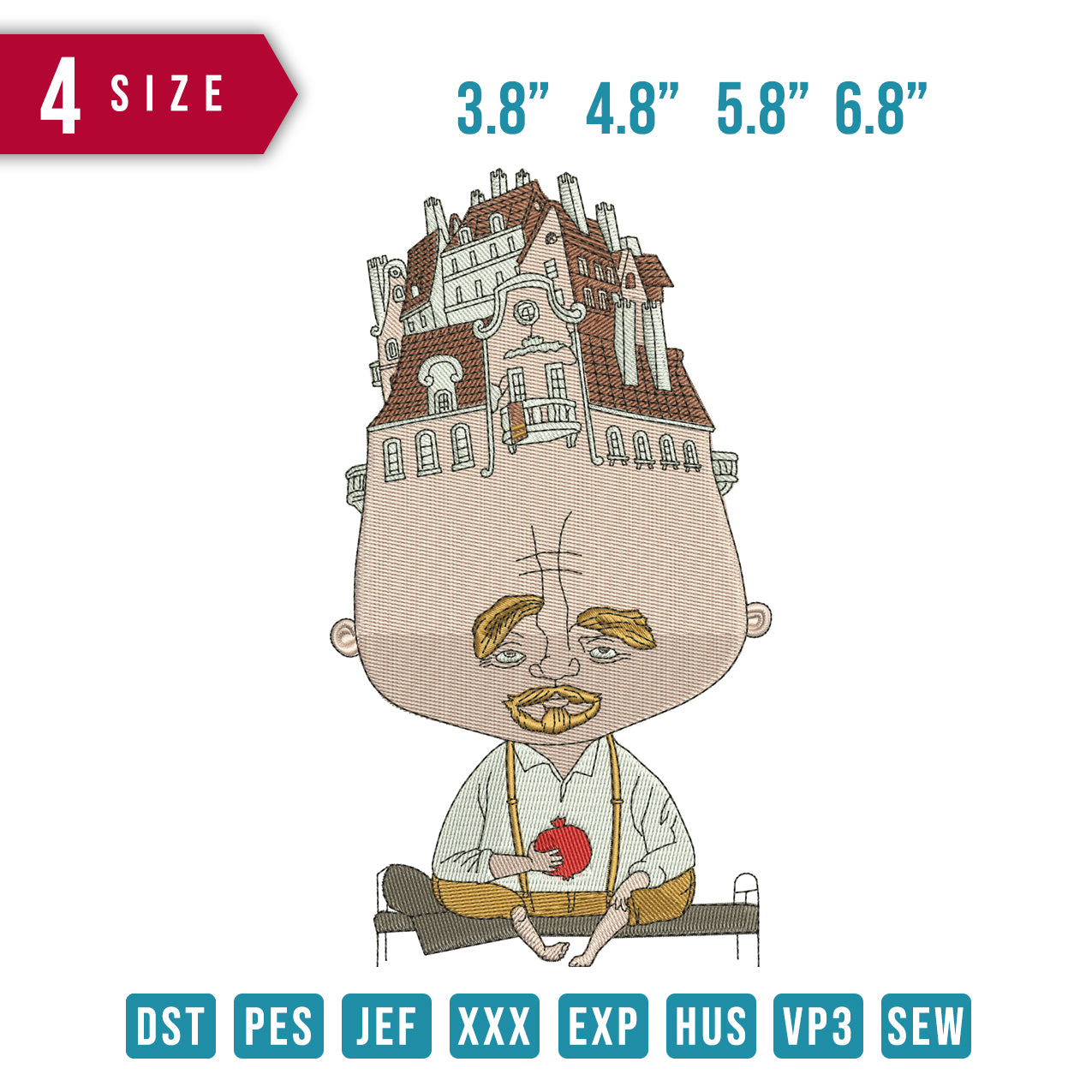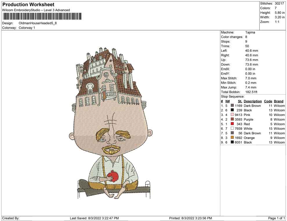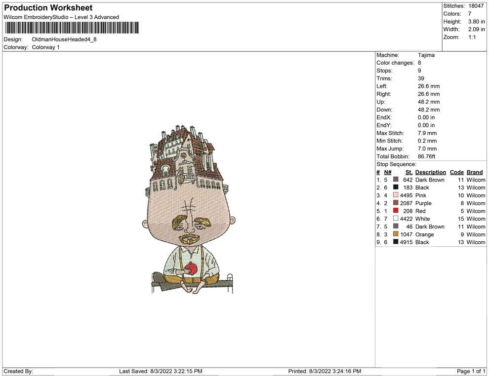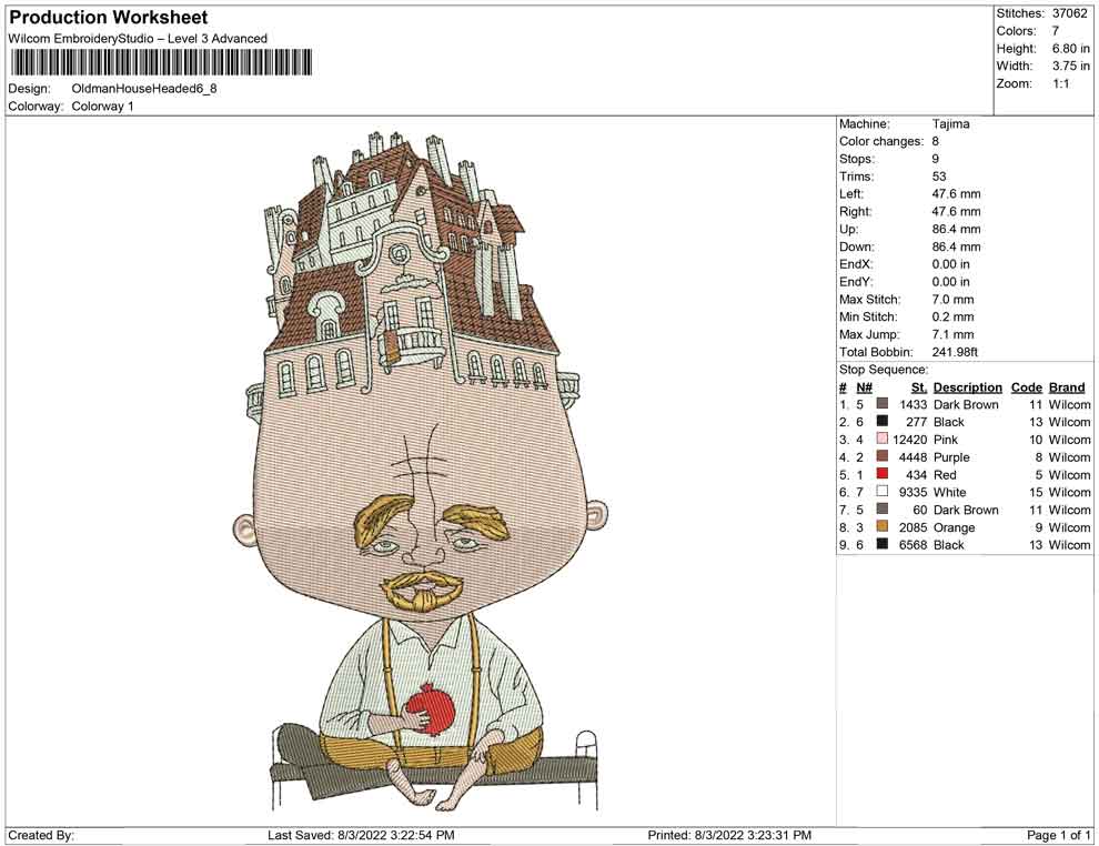 Oldman House headed embroidery design